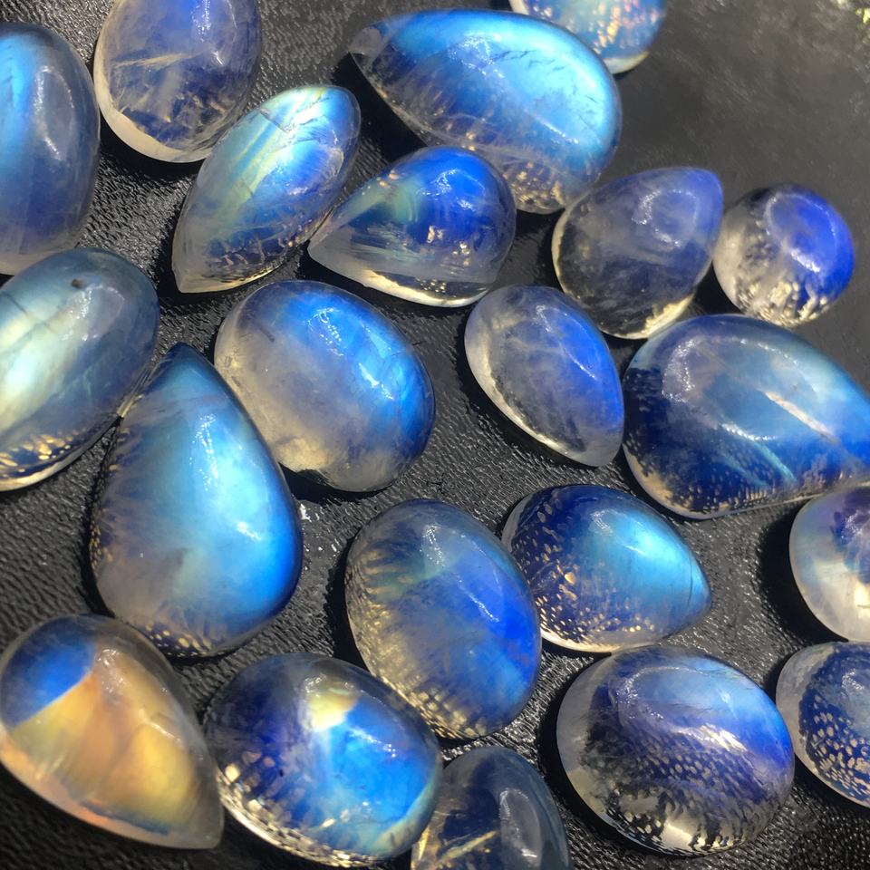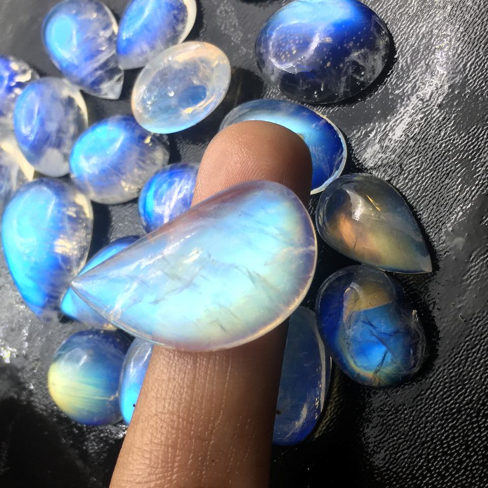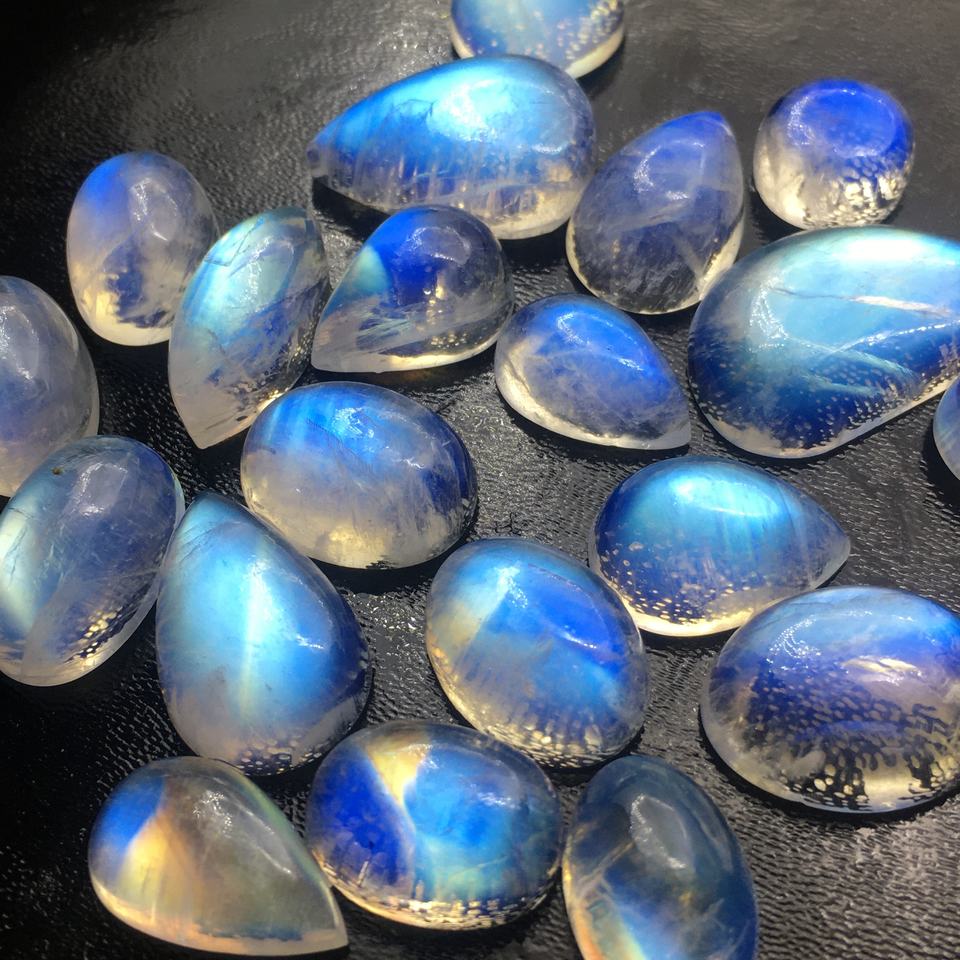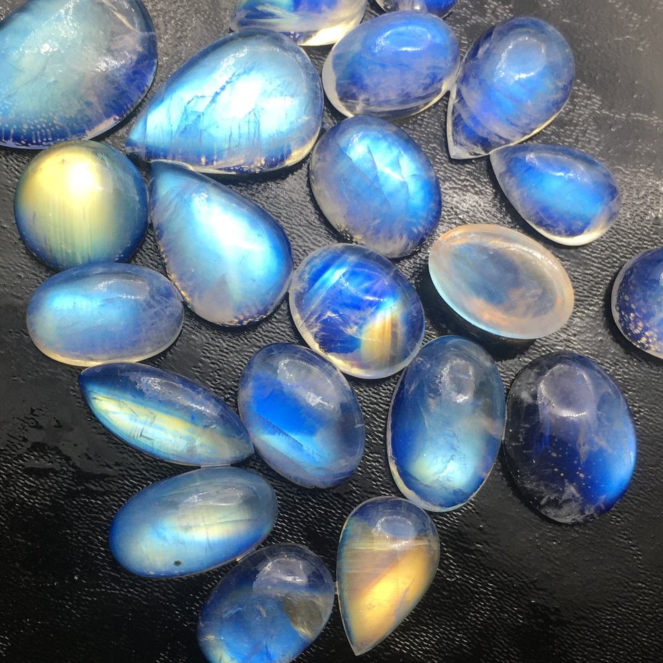 บลูมูนสโตน คุณภาพเยี่ยม ธรรมชาติ แสงสะท้อนเต็มรูปแบบ รูปทรงหลวมๆ แบบคาโบชอง รูปทรงคละแบบ รับรองโดยบุคคลที่สาม ไม่มีรู