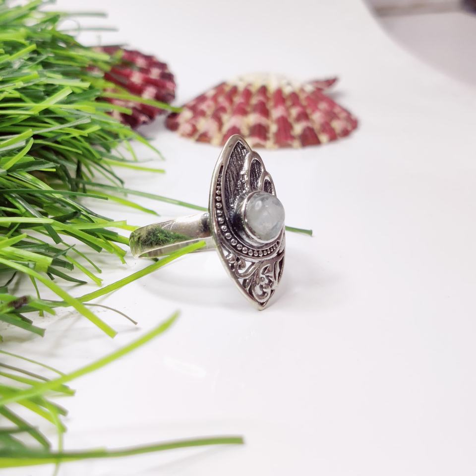 แหวนเงินแท้ประดับพลอยบลูมูนสโตนทรงโบฮีเมียน ของขวัญที่ดีที่สุดสำหรับเธอในโอกาสงานแต่งงาน งานเลี้ยง และวันครบรอบ