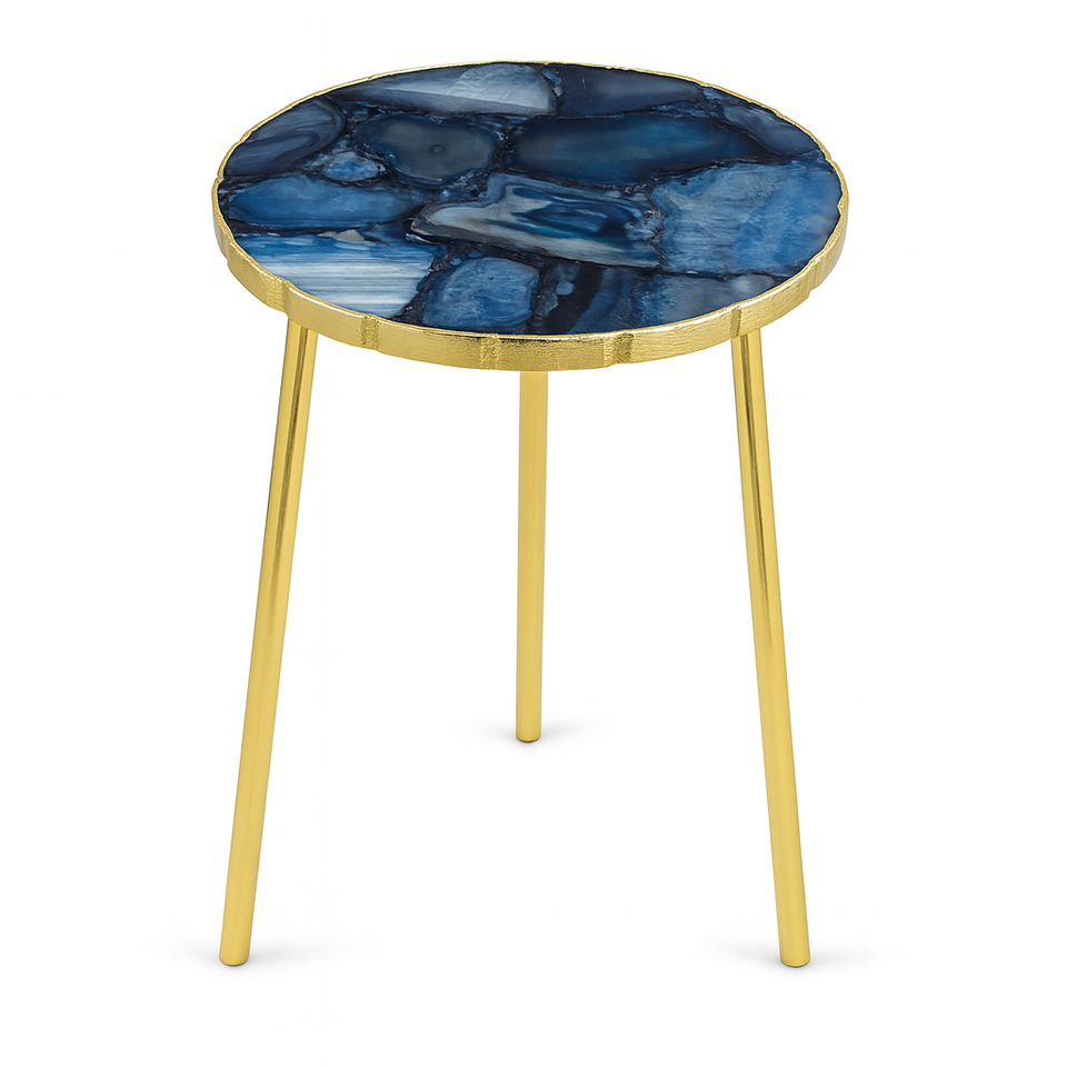 โต๊ะกาแฟขัดเงาอาเกตธรรมชาติสีน้ำเงินขอบชุบทองดีไซน์ประติมากรรมหรูหราตกแต่งบ้าน