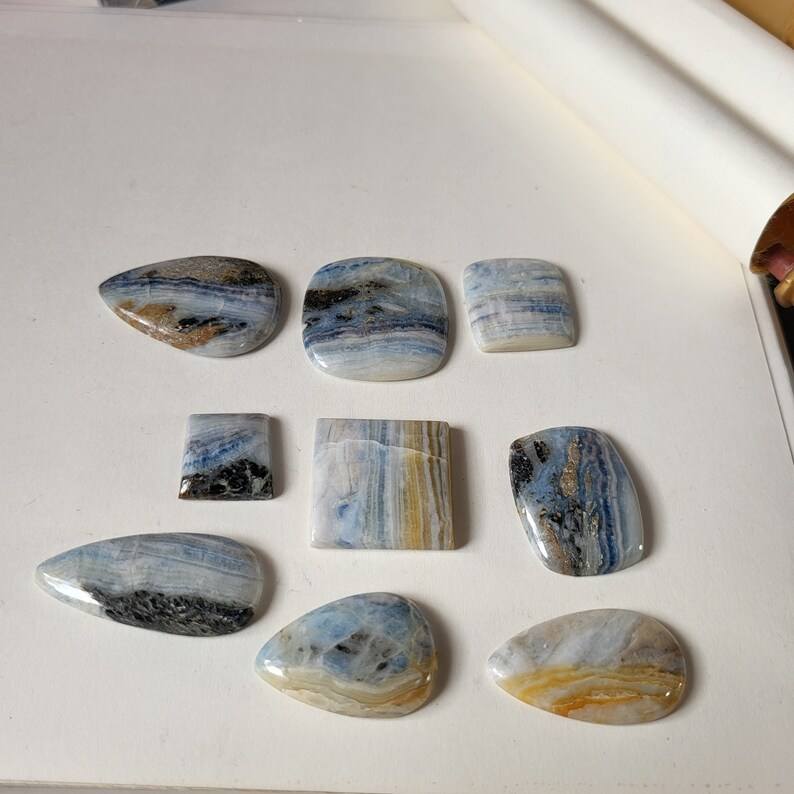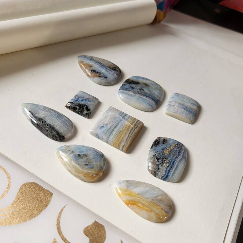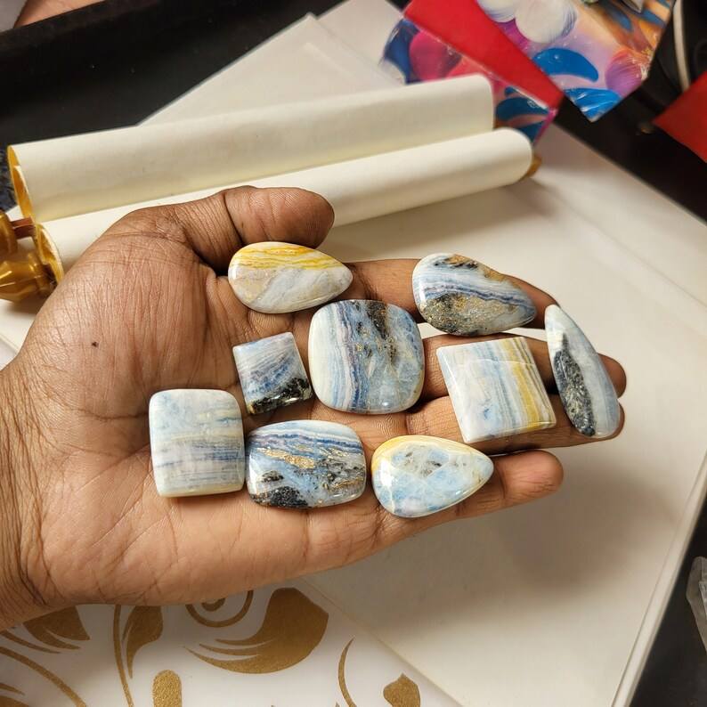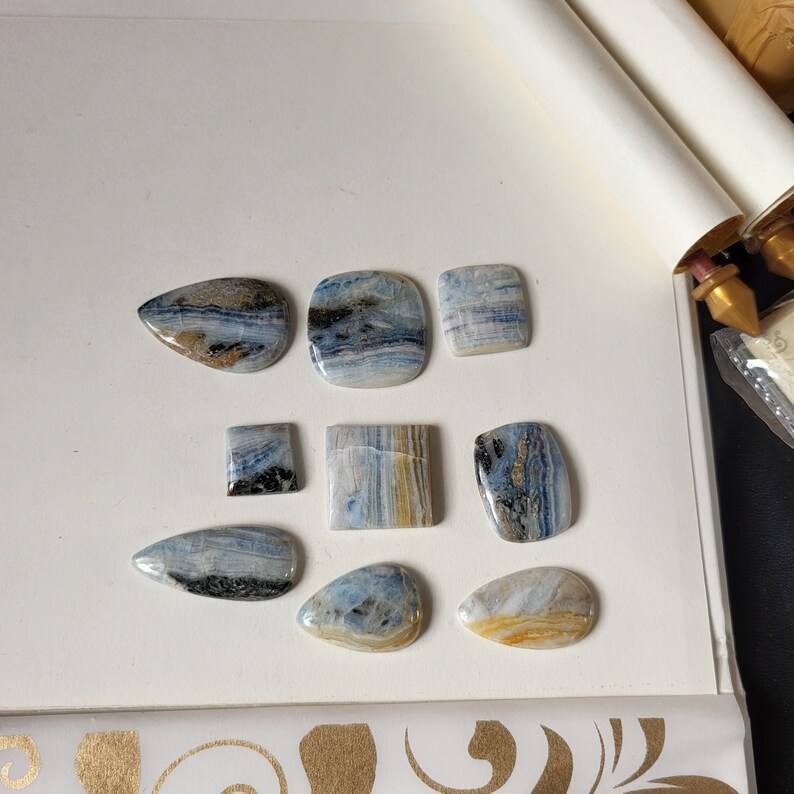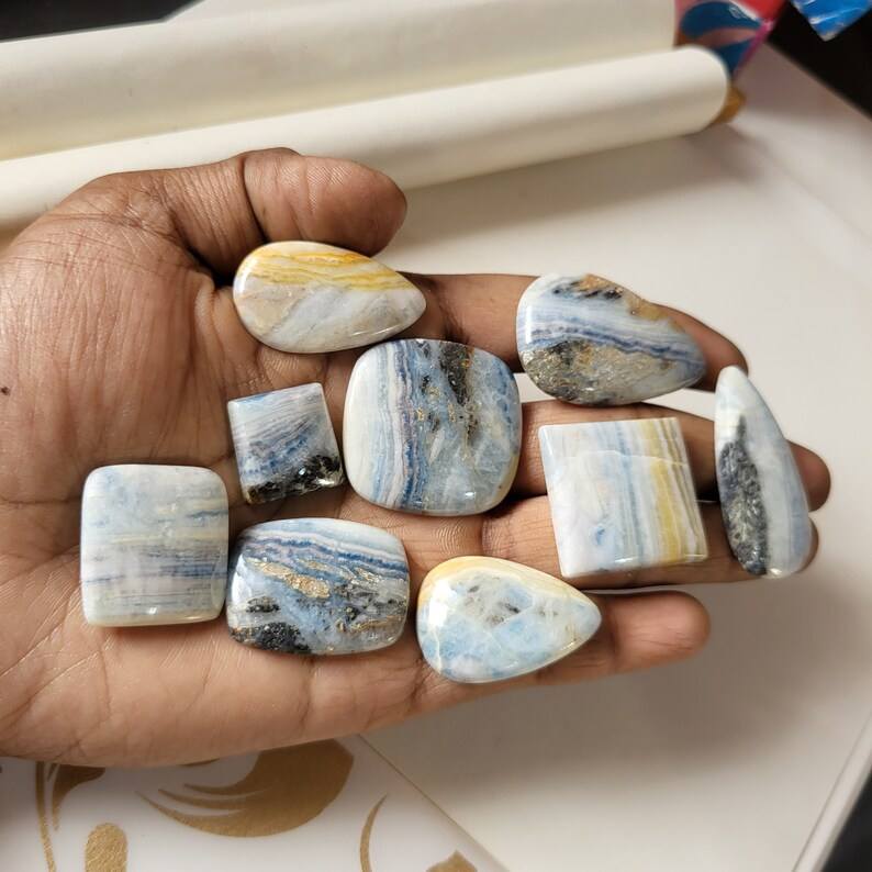 พลอยเทียมขัดหลังเบี้ยธรรมชาติสีน้ำเงินทรงหลวมสำหรับทำเครื่องประดับขายส่ง