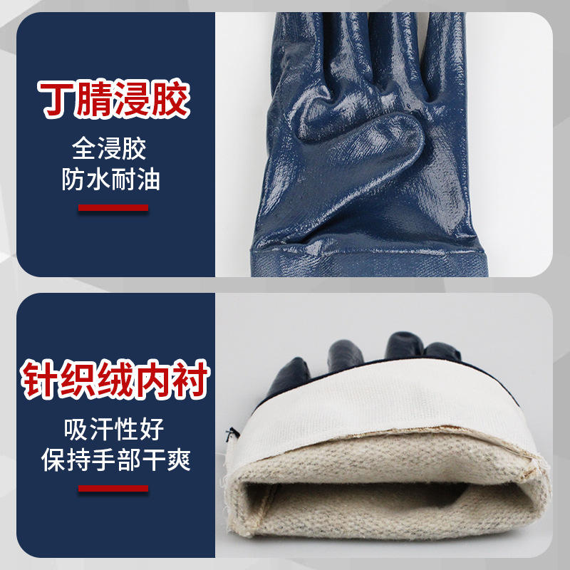 ถุงมือทำงานไนไตรล์สีน้ำเงินเคลือบเต็มถุงมือ ทนน้ำมัน ทนการสึกหรอ กันลื่น ถุงมือเพื่อความปลอดภัยเอนกประสงค์ ขนาด M