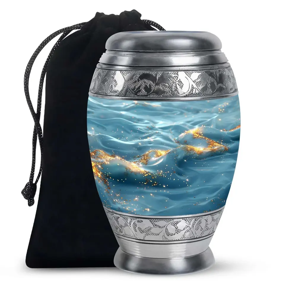 โกศบรรจุอัฐิแบบนามธรรมลายคลื่นทะเลสีฟ้า สำหรับบรรจุอัฐิผู้หญิง
