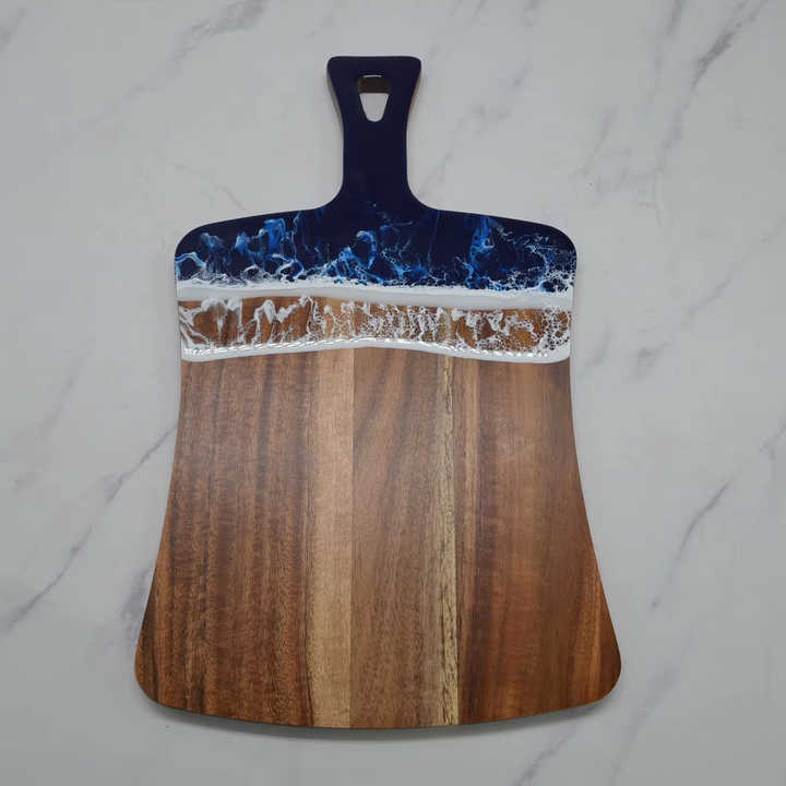 เขียงทรงสามเหลี่ยมลายคลื่นทะเลสีน้ำเงินปรับขนาดได้เองใช้สับในครัวเป็นมิตรกับสิ่งแวดล้อมให้บริการอาหารอย่างยั่งยืน