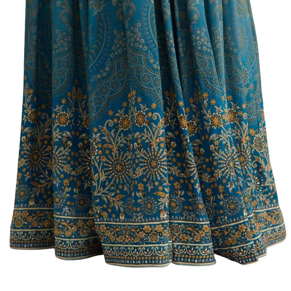 ชุดเครพเคอร์ตาพาเลซสีฟ้าพร้อมตาข่ายประดับเครื่องแต่งกายพื้นเมืองสำหรับผู้หญิง