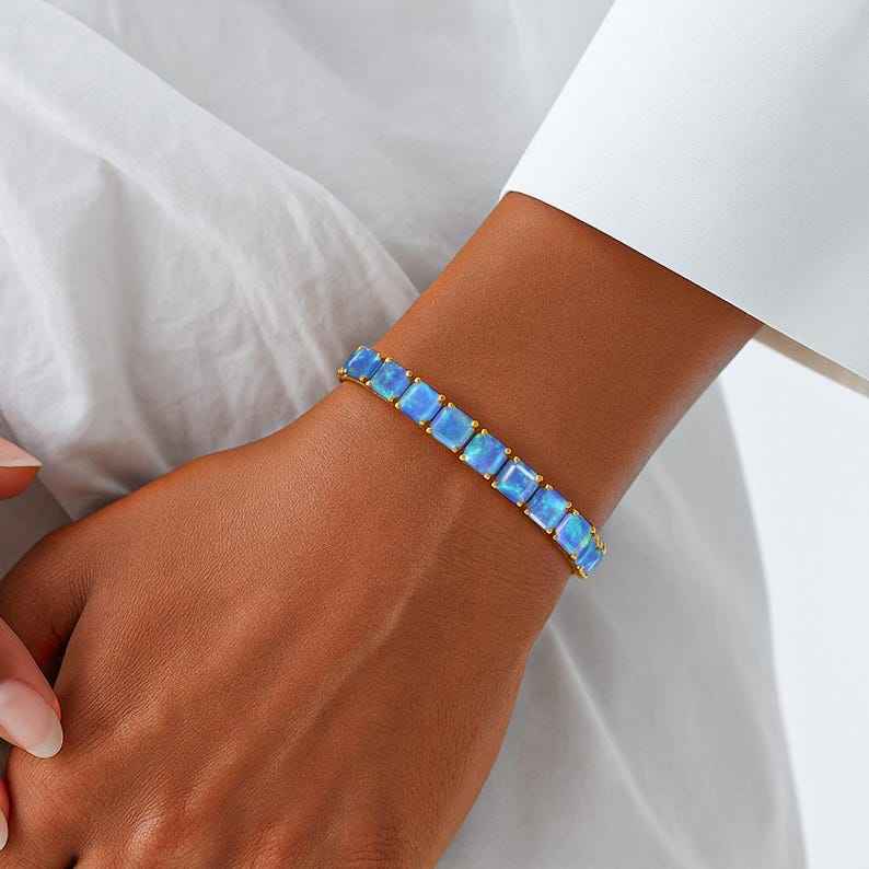 คีย์เวิร์ด:สร้อยข้อมือเทนนิสไฟสีฟ้าโอปอลเรืองแสงหลายอันสร้างขึ้น
