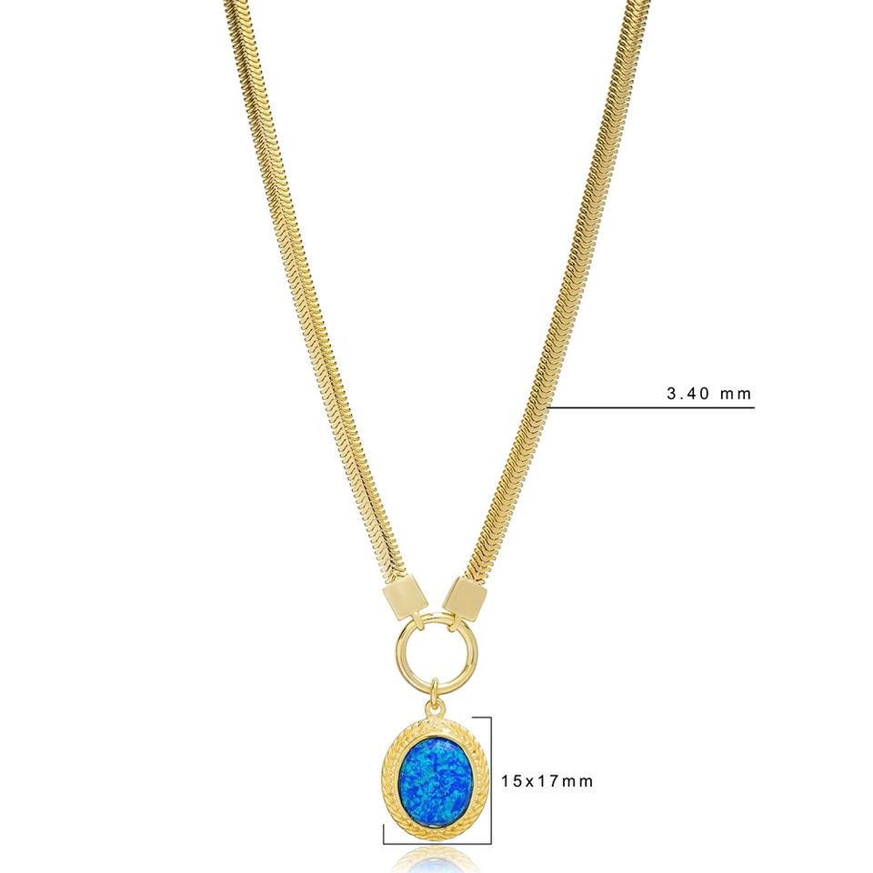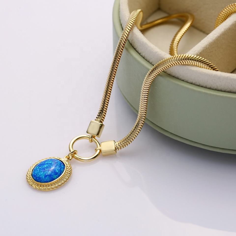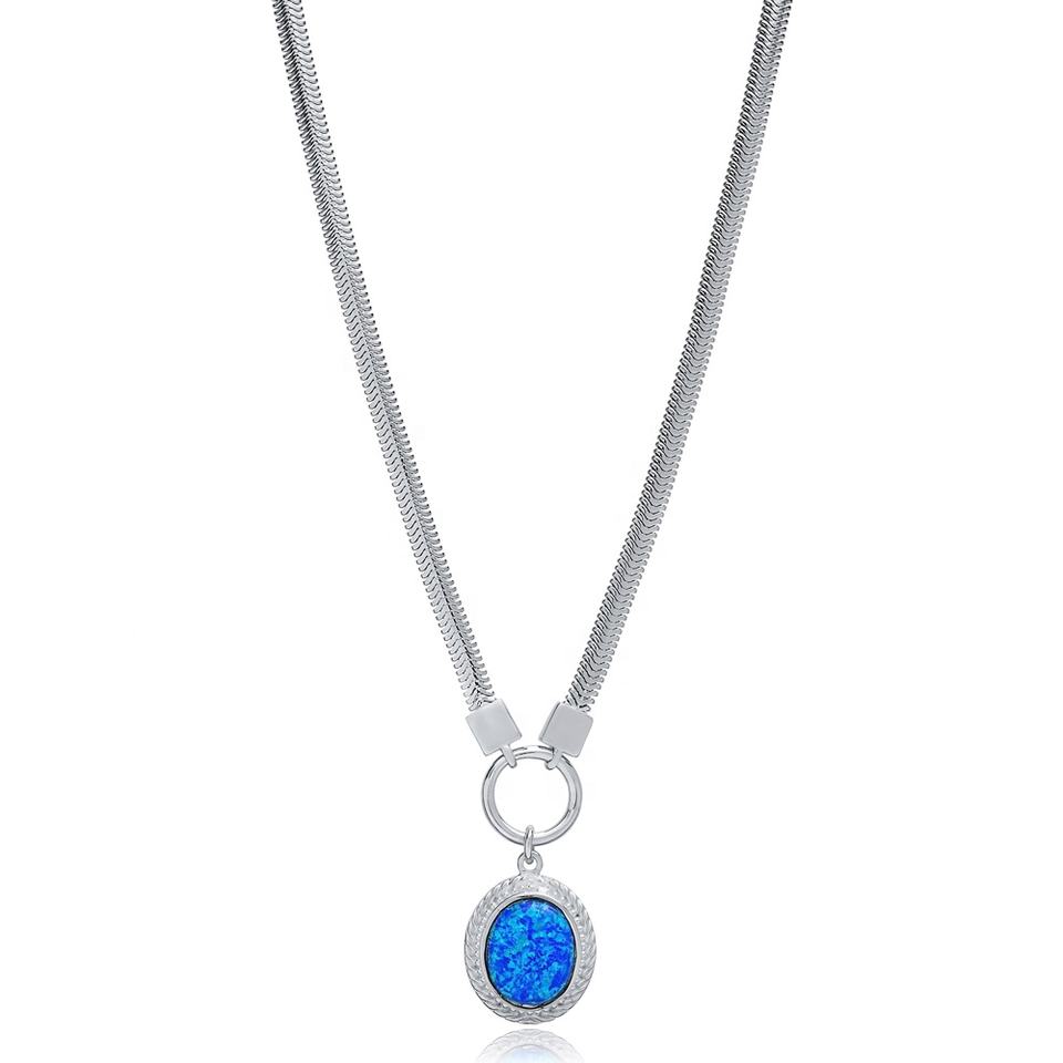 ห่วงโซ่รูปหินโอปอลสีฟ้าดีไซน์แบบตุรกีทำด้วยมือเครื่องประดับเงินสเตอร์ลิง925ขายส่ง