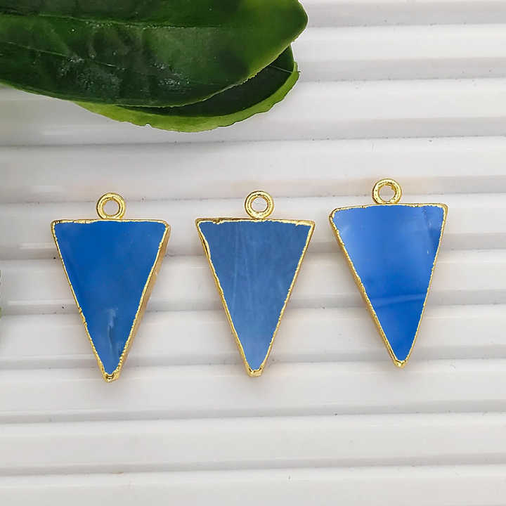 จี้รูปสามเหลี่ยมโอปอลสีน้ำเงินเคลือบทอง โอปอลธรรมชาติสีน้ำเงิน ขนาด 20x15 มม. ชุบทอง ทำด้วยมือ สำหรับทำเครื่องประดับ ตัวเชื่อมต่อแบบแผ่น