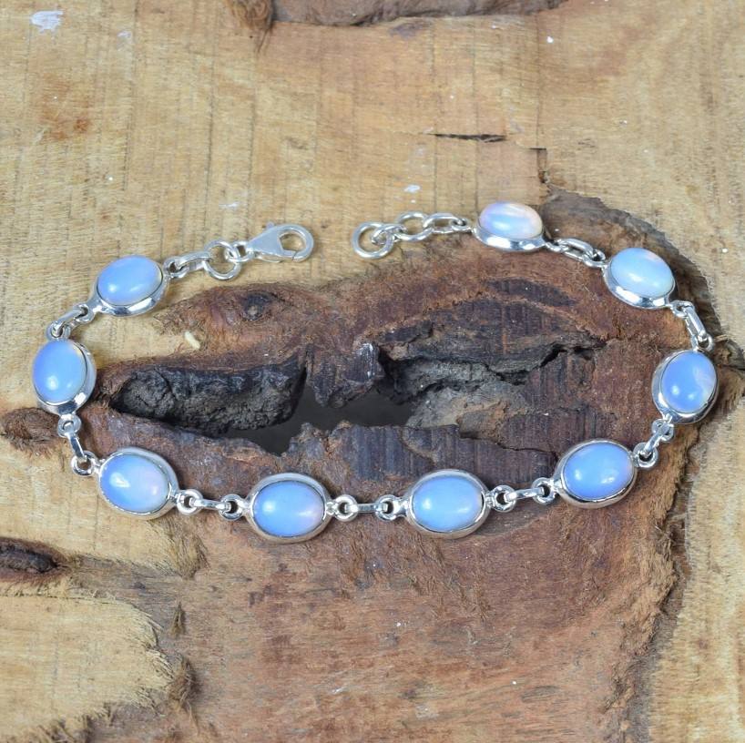 สร้อยข้อมือเงินพลอยโอปอลสีน้ำเงิน