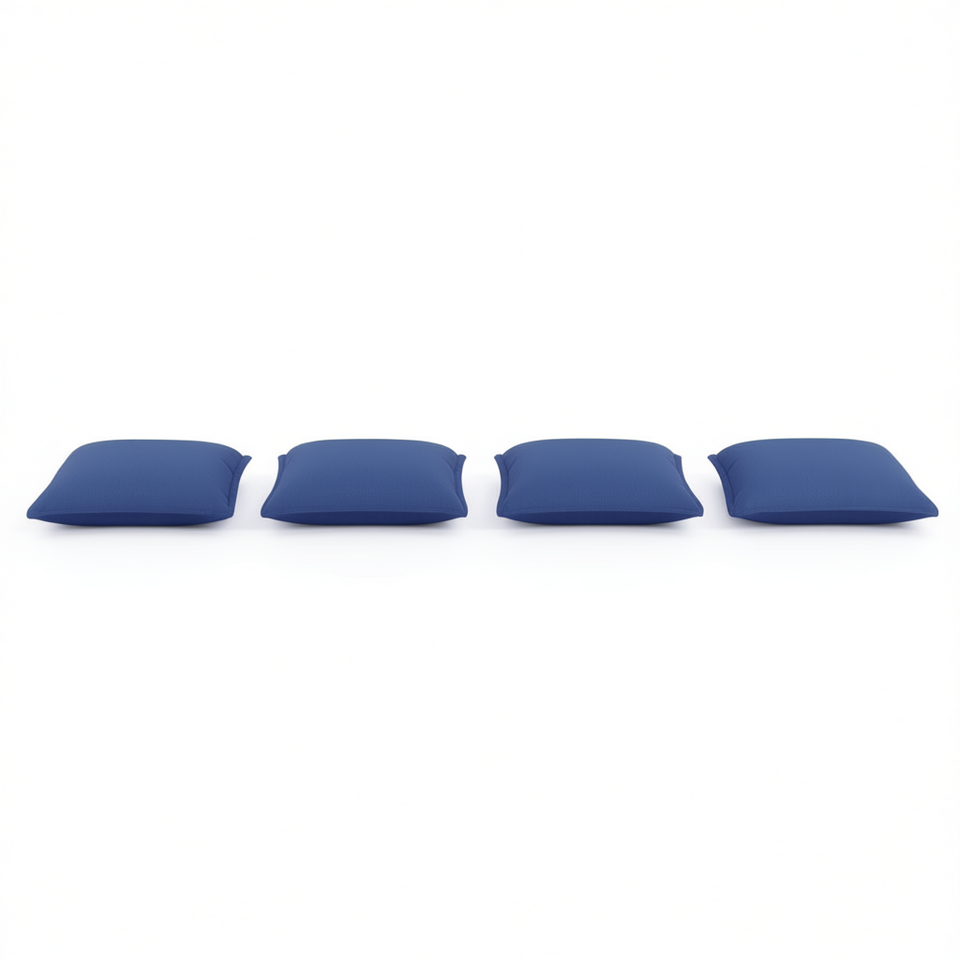 ชุดเบาะเก้าอี้กลางแจ้งผ้าอ็อกซ์ฟอร์ดสีน้ำเงิน ชุด 4 ชิ้น ทรงสี่เหลี่ยม กันน้ำ ถอดซักได้ ไส้ใยโพลีเอสเตอร์ 100%