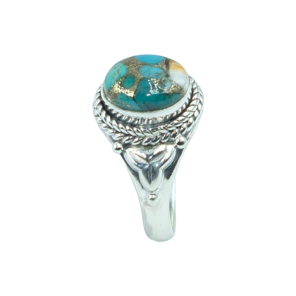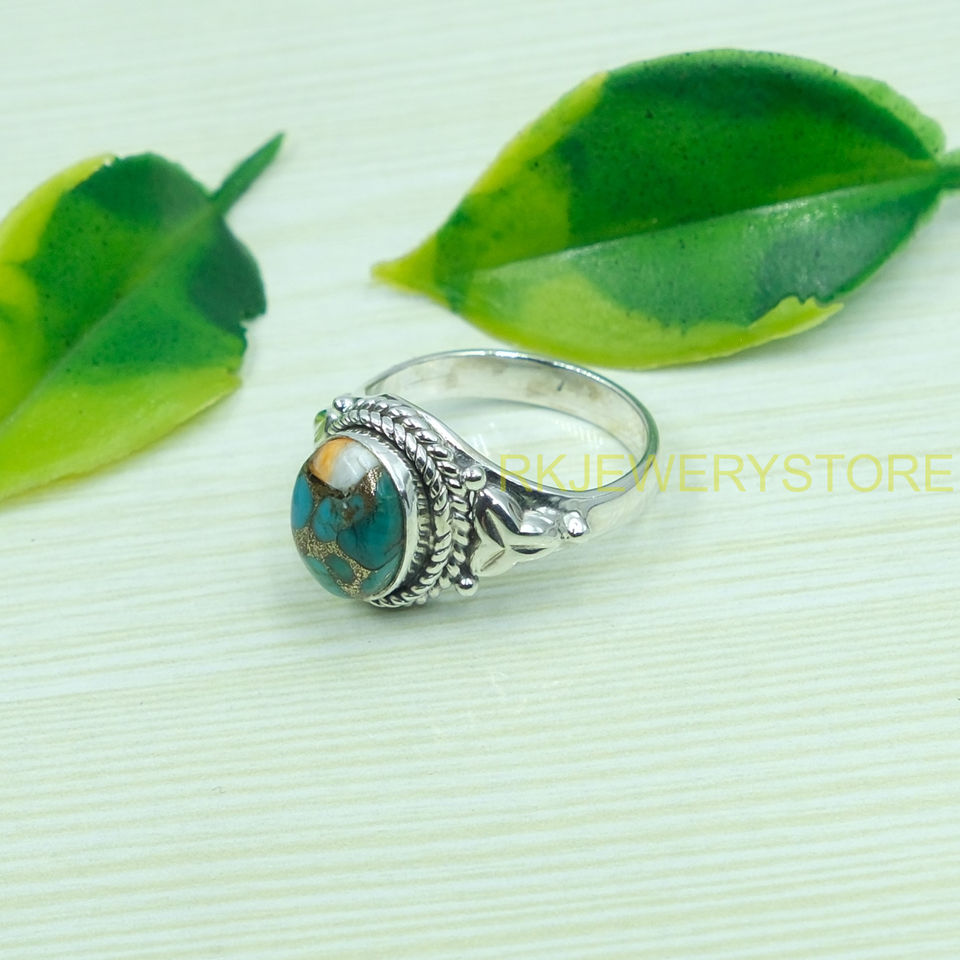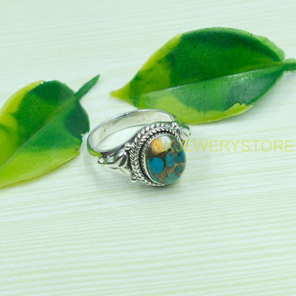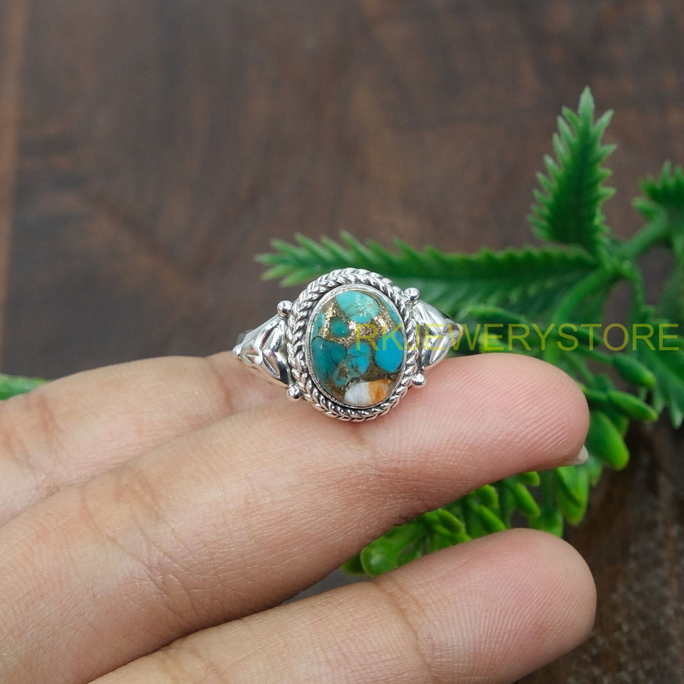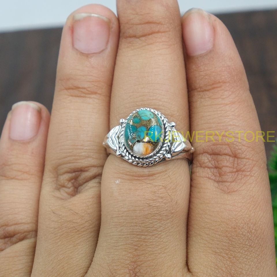 แหวนมุกสีฟ้าเทอร์ควอยซ์ แหวนเงินแท้ 925 แหวนทำมือ ดีไซน์ไม่ซ้ำใคร แหวนประดับอัญมณี เครื่องประดับเทอร์ควอยซ์ ของขวัญ