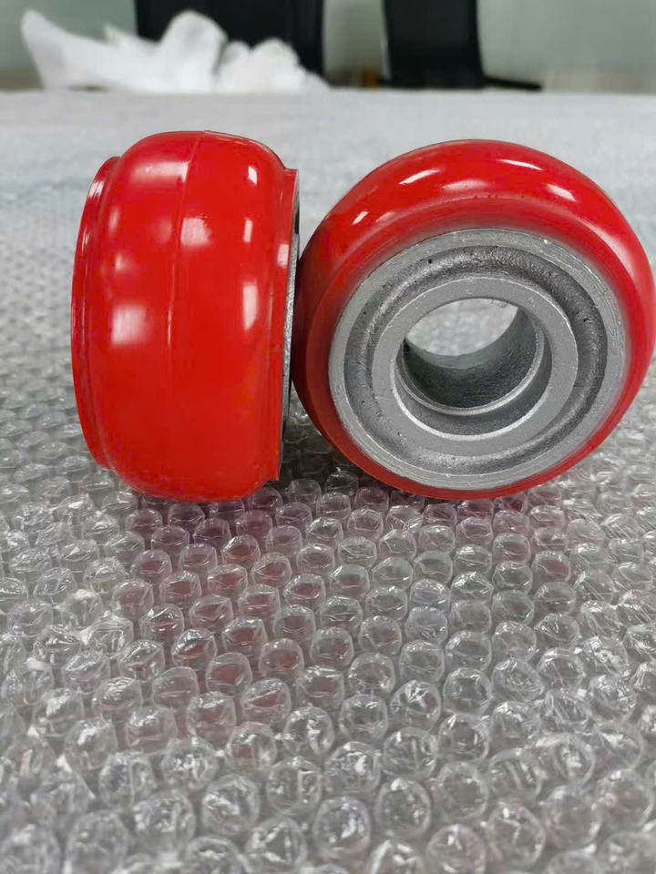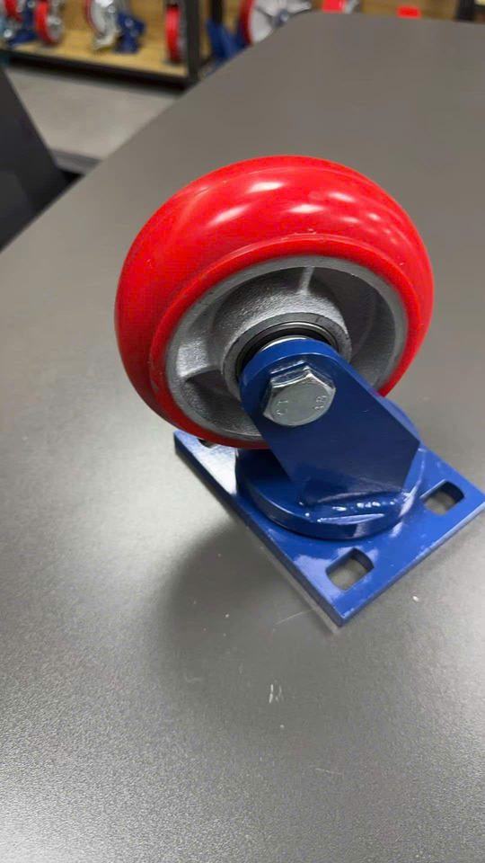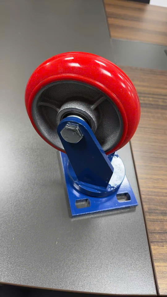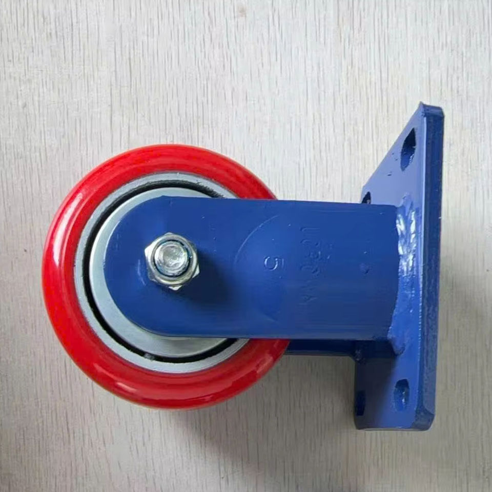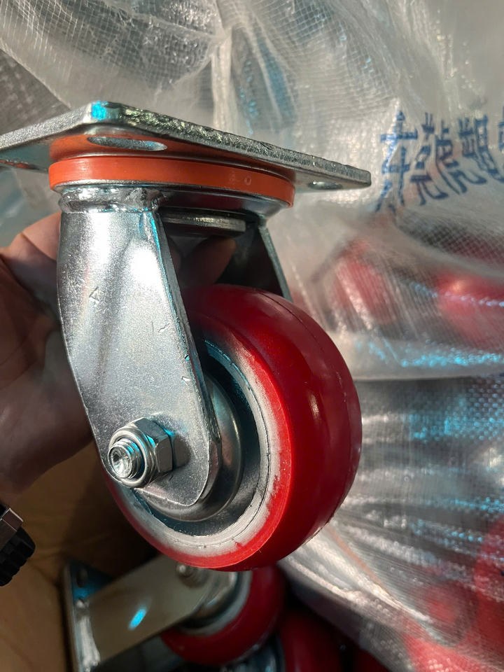ล้อเลื่อนหมุนได้สีแดงพร้อมแกนเหล็กเคลือบ PU ลูกปืนคู่ ขนาด 4 5 6 8 นิ้ว สำหรับรถเข็นงานหนัก