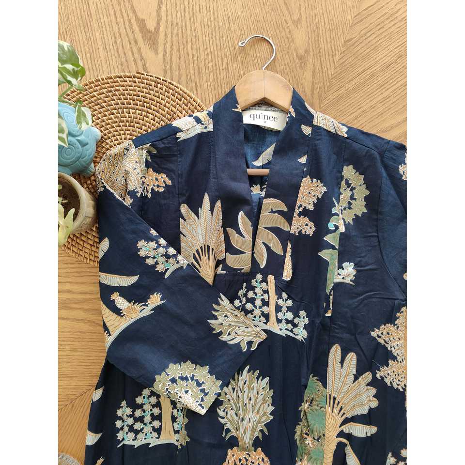ชุดเดรสสีน้ำเงินลายปาล์ม-สไตล์โบโฮ เรียบร้อย เหมาะสำหรับสาวออฟฟิศ คอเหลี่ยม ระบายอากาศได้ดี ไซส์ใหญ่พิเศษ ODM สำหรับไซส์ XS ถึง 6XL สำหรับใส่ไปเที่ยวคลับ พักผ่อน และงานปาร์ตี้