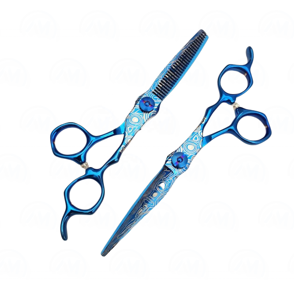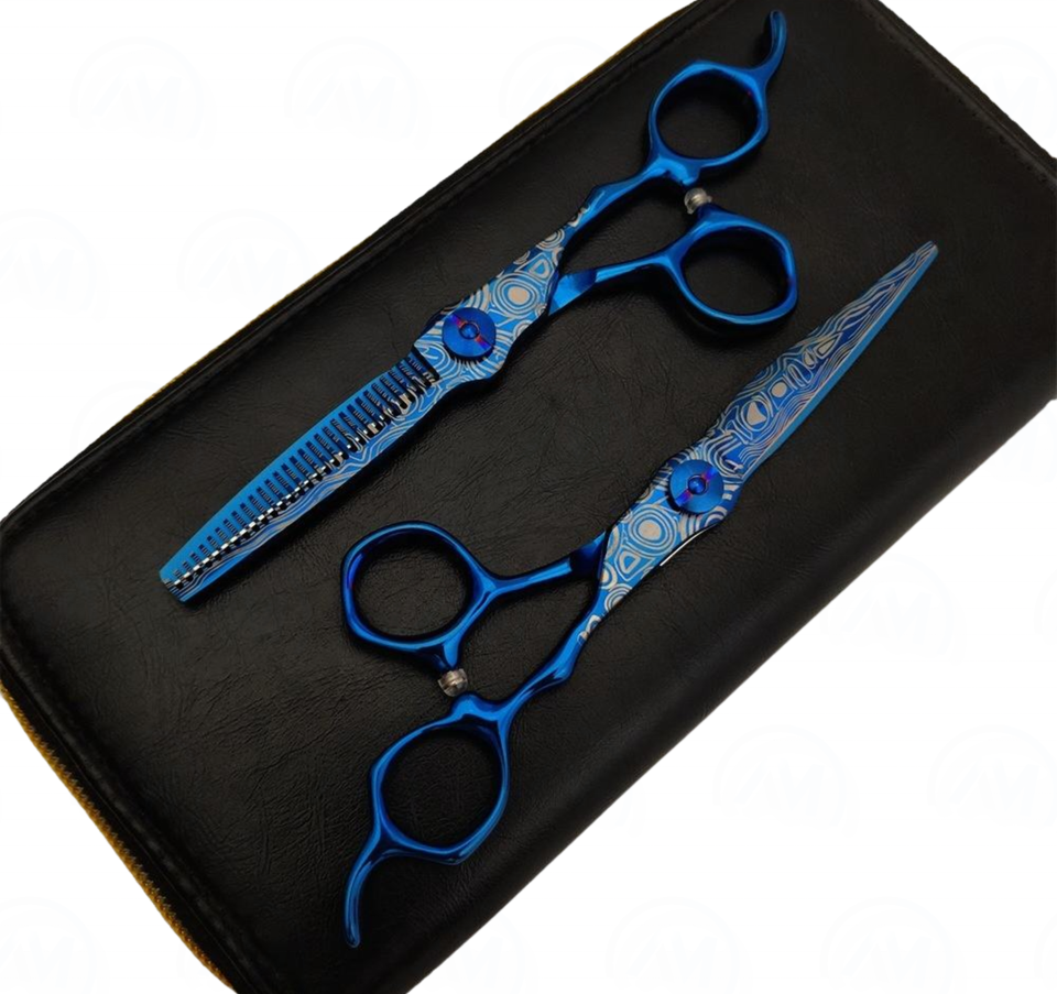 ชุดกรรไกรตัดผมสเตนเลสสตีลคมกริบ ลายสีน้ำเงิน