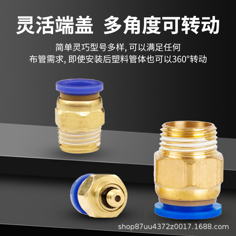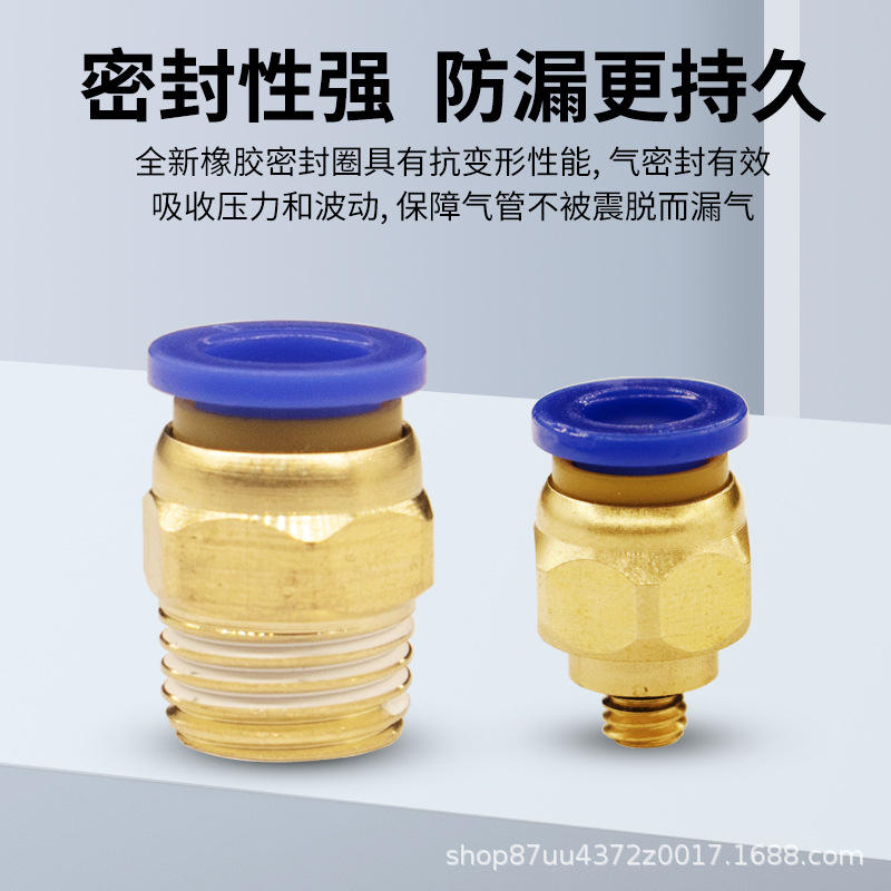 ข้อต่อสายลมสีน้ำเงินแบบเร็ว ข้อต่อทองเหลืองเกลียวตรง 4 มม. 10 12 16 03 อะไหล่ระบบนิวเมติก