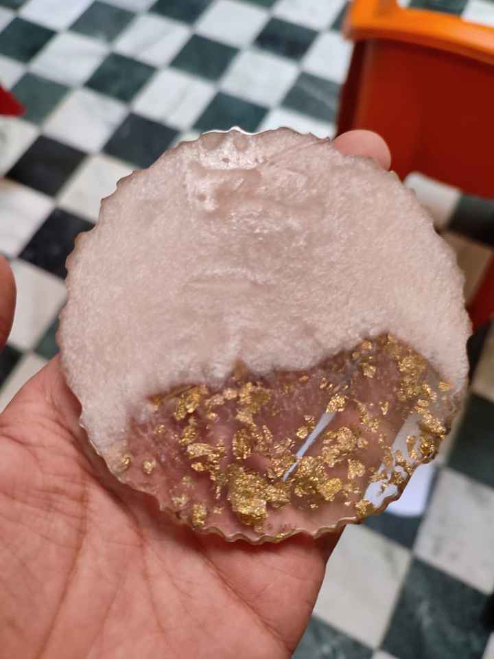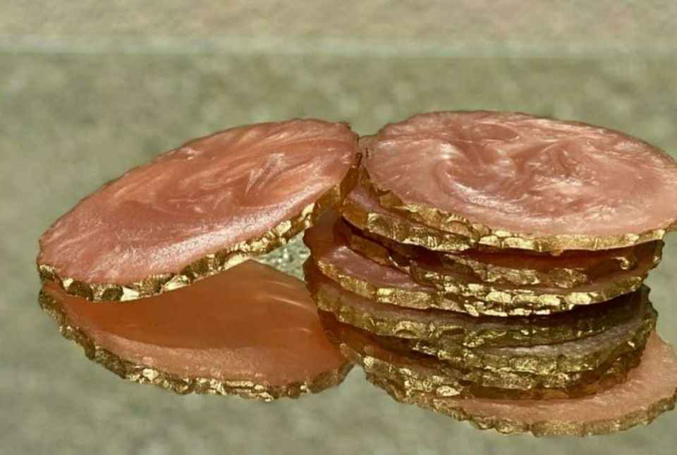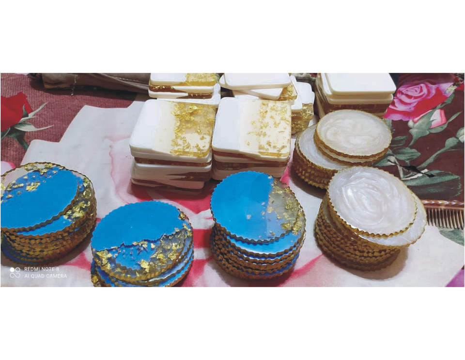 Product name:Blue & Pearl White With Gold Rim Resin Coasters