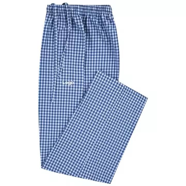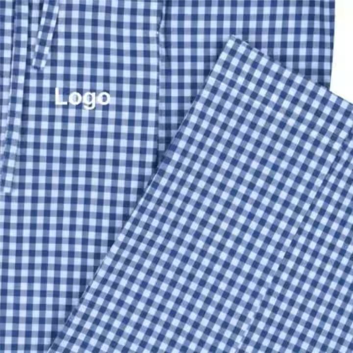 ชุดนอนผ้าสักหลาดลายสก๊อตสีน้ำเงินมีกระเป๋าคาดเอวมีกระเป๋าสำหรับคู่ผ้าคอตตอนนุ่มสำหรับ100%
