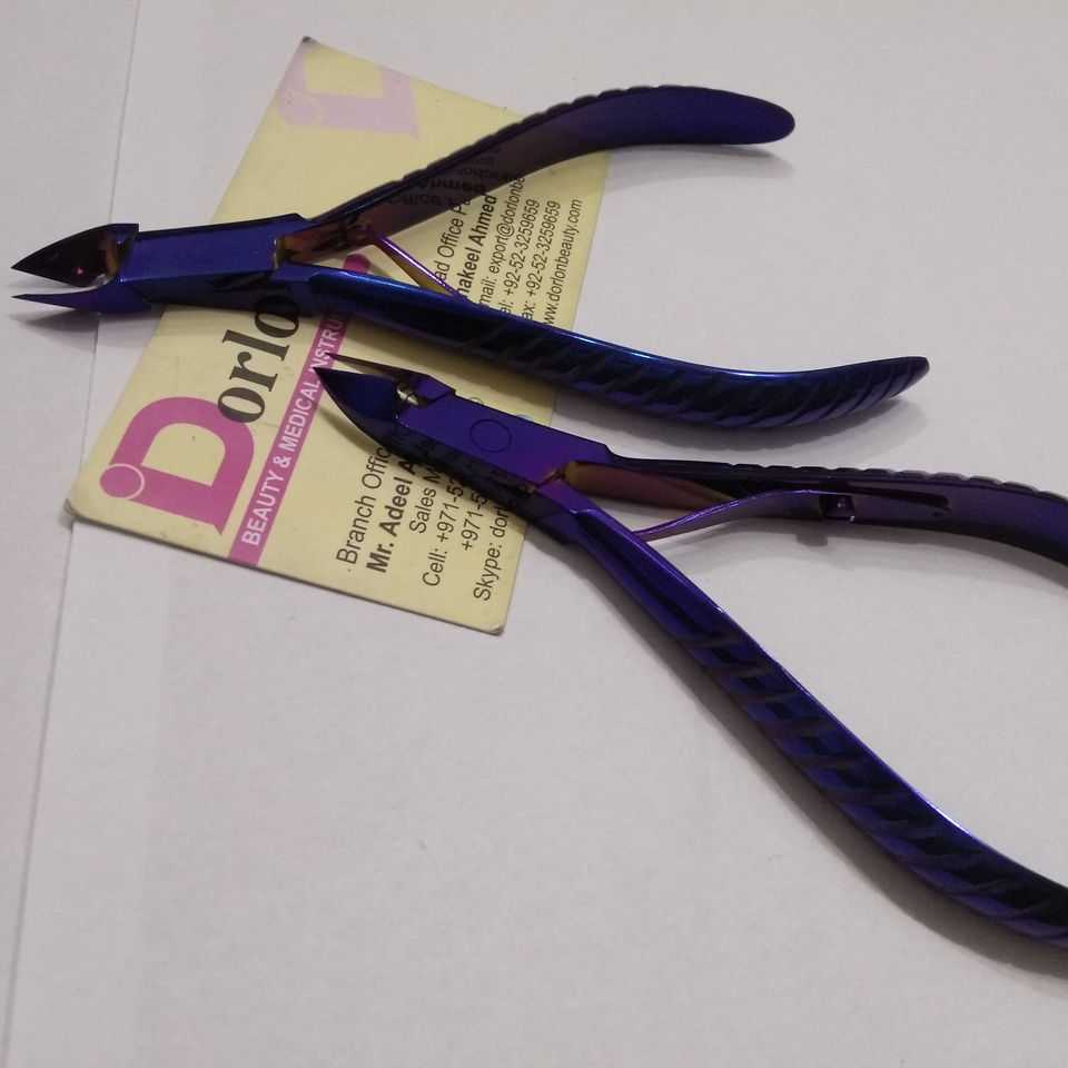 ที่ตัดเล็บสแตนเลสสตีลสีน้ำเงินพลาสม่า พร้อมโลโก้สั่งทำ ปลายแหลมคม สำหรับตัดหนังกำพร้าบริเวณนิ้วมือ ใช้สำหรับทำเล็บมือ ได้รับการรับรองมาตรฐาน CE ทนทาน