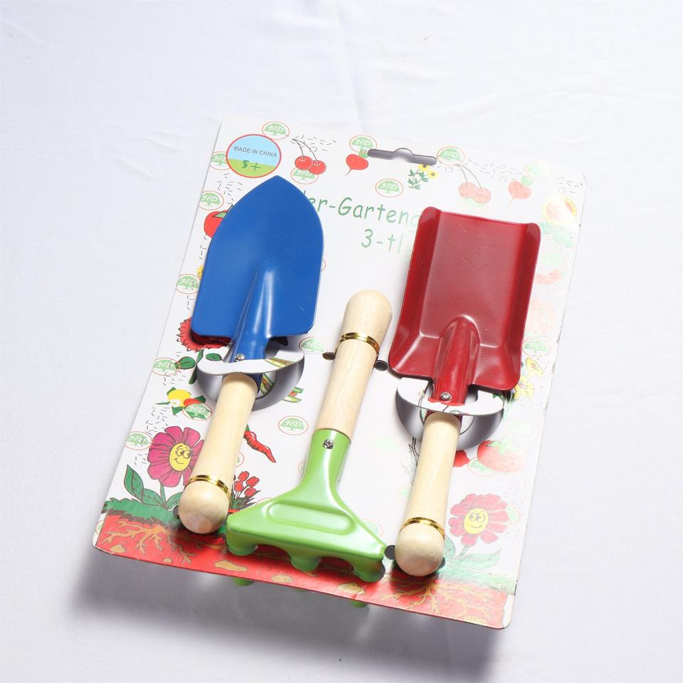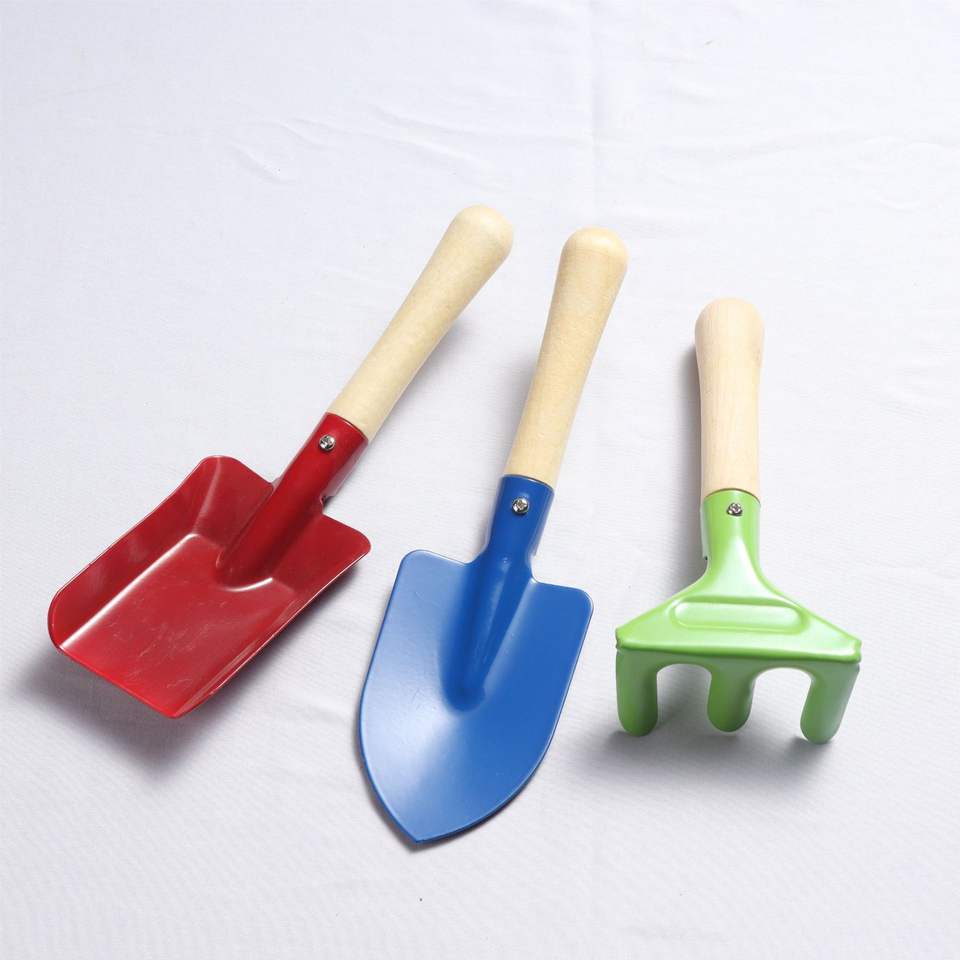 พลั่วพลาสติกสีน้ำเงินพร้อมด้ามไม้สำหรับเด็กและสวนขนาดเล็กสำหรับใช้งานกลางแจ้ง