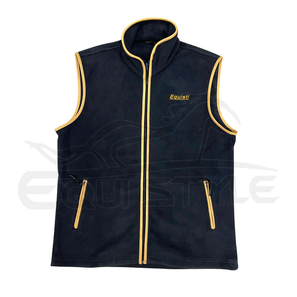 เสื้อกั๊กขนแกะขั้วโลกสีน้ําเงินสําหรับผู้ชายและผู้หญิงเพิ่มคู่ 330 แกรมสองกระเป๋าด้านข้างสีเหลืองท่อตัดแขนกุดเสื้อกั๊กเดินทางกลางแจ้ง