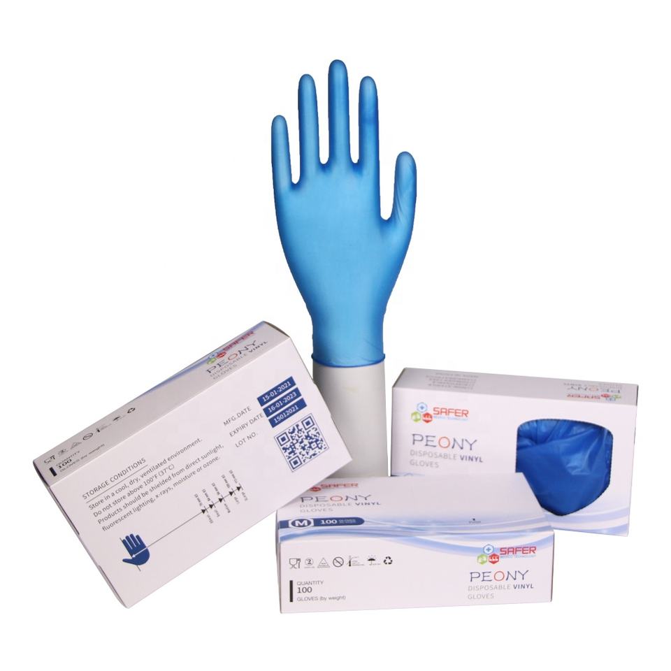 ถุงมือพีวีซีถุงมือไวนิลปราศจากผงสีน้ำเงิน