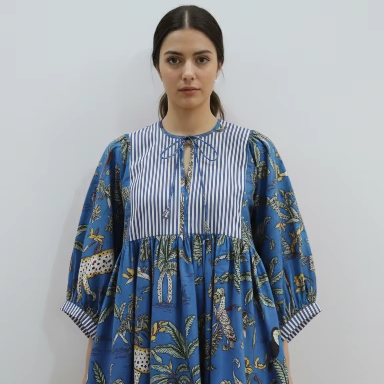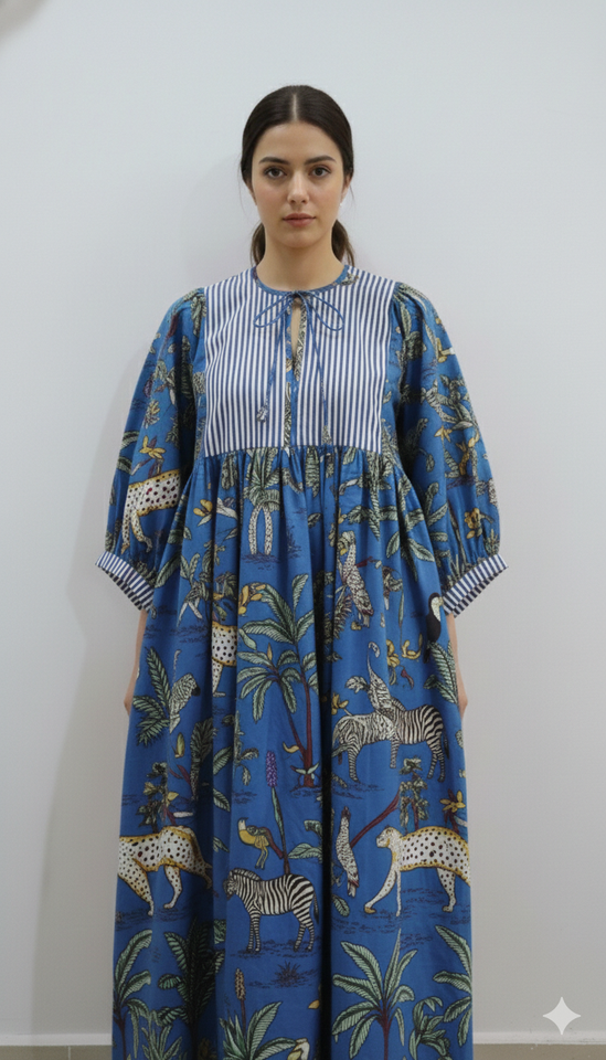 ชุดเดรสยาวพิมพ์ลายดอกไม้สีฟ้า ผ้าฝ้าย 100% สไตล์โบโฮ ธีมป่า สำหรับผู้หญิง ทำมือ ทรงเอวธรรมชาติ เหมาะสำหรับฤดูใบไม้ร่วงและฤดูร้อน