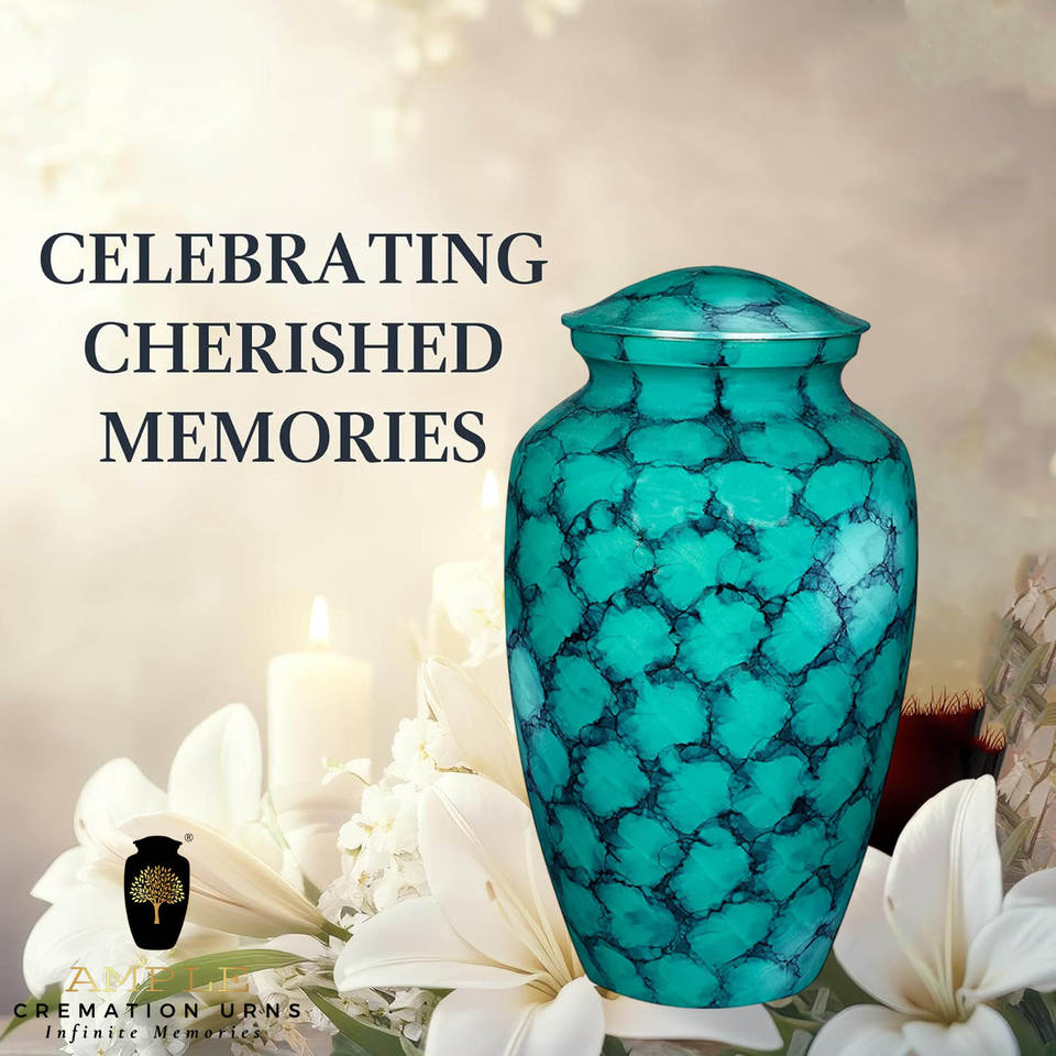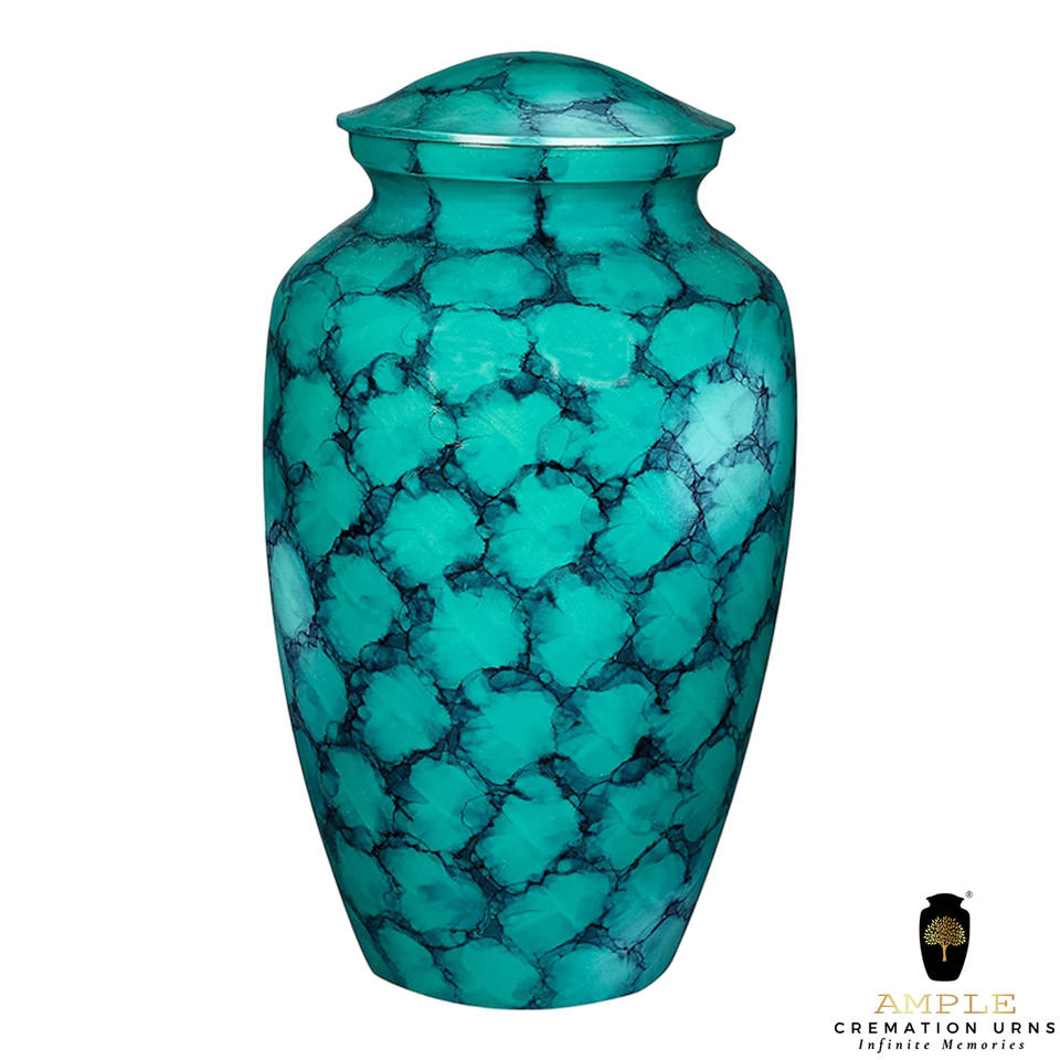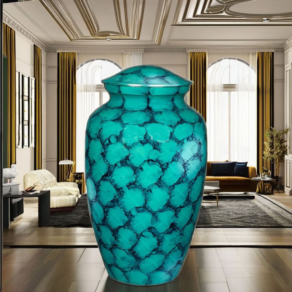 โกศเผาศพทำมือสไตล์ยุโรป/อเมริกัน สีฟ้าพิมพ์ลาย ขนาด 10 นิ้ว เป็นมิตรกับสิ่งแวดล้อม ทนทาน