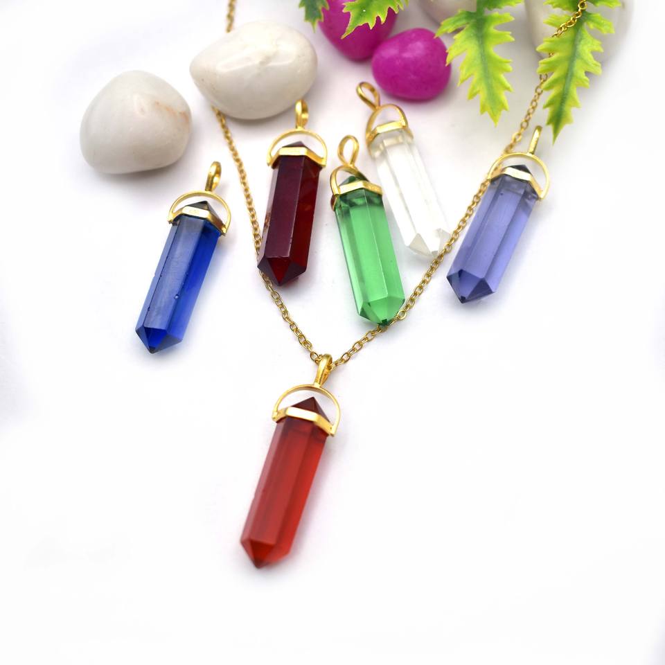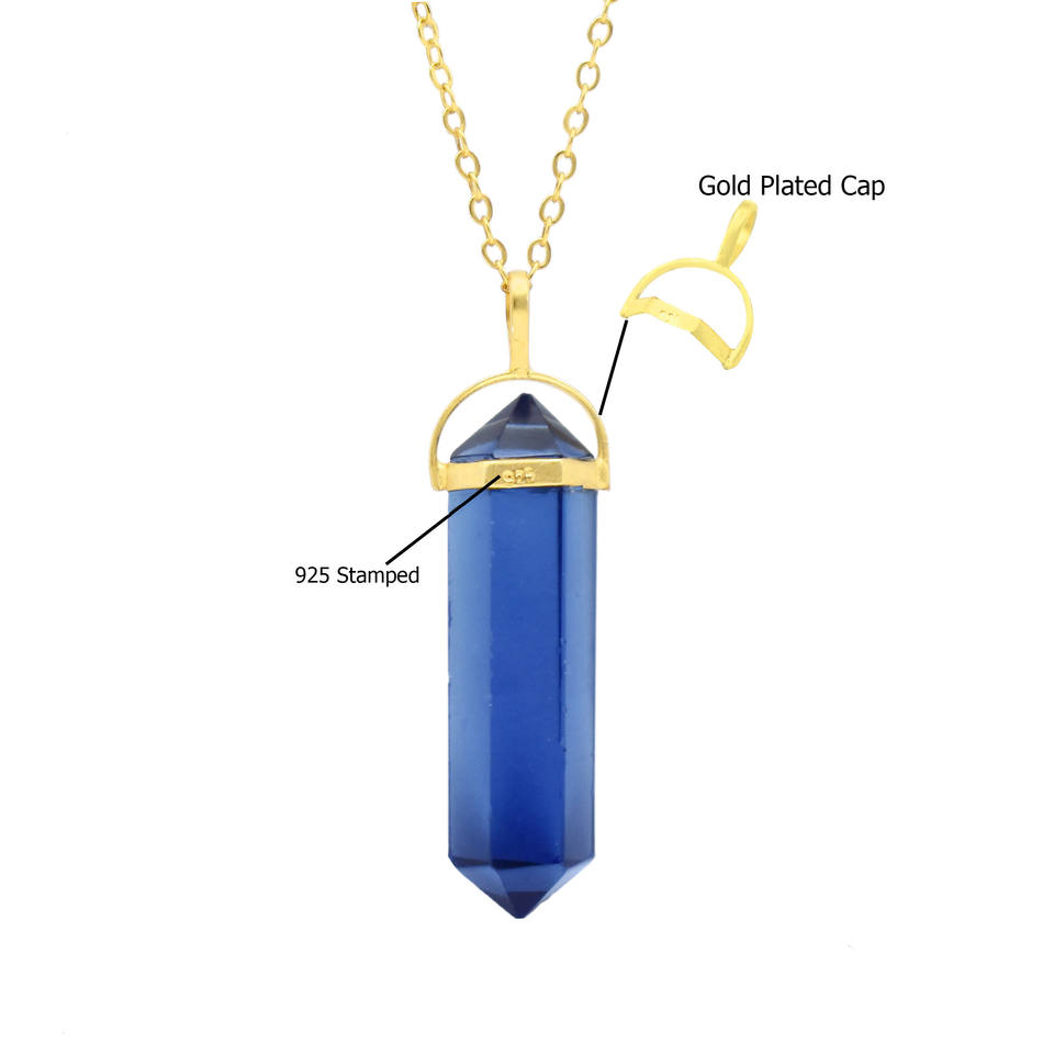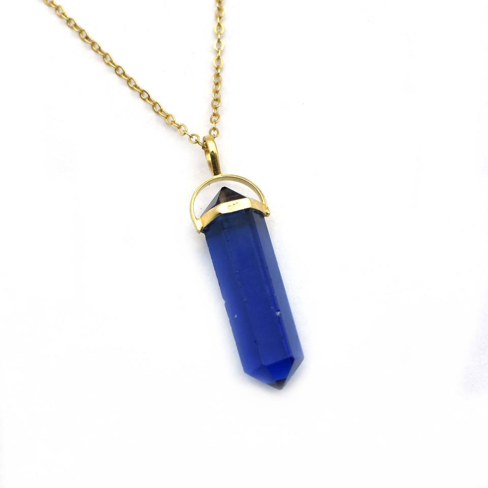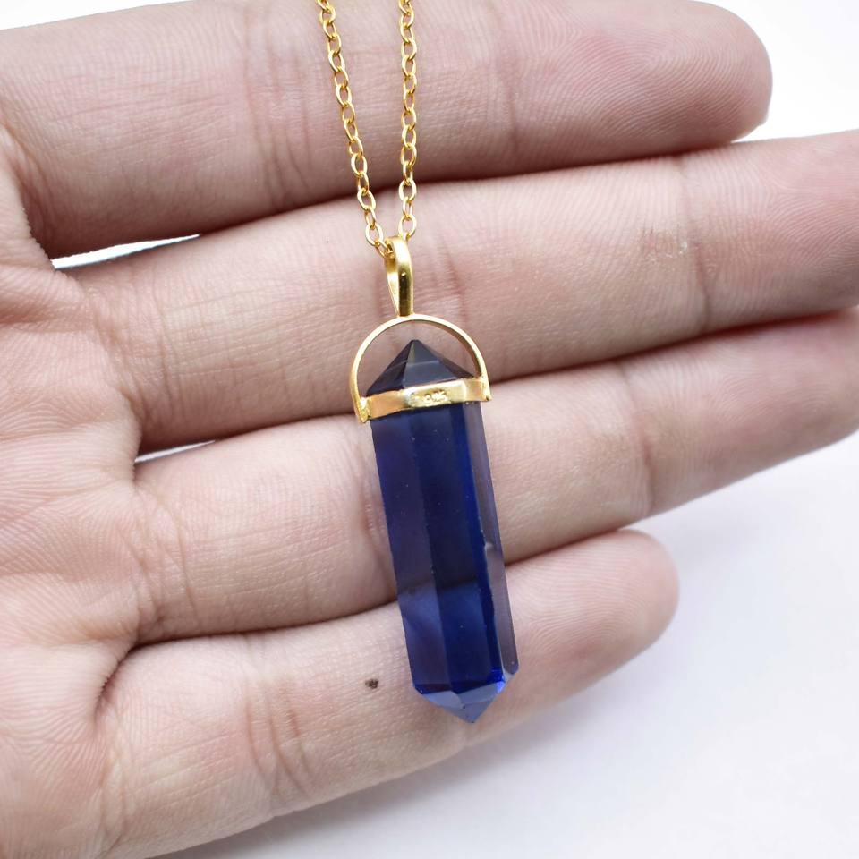 สร้อยคอทรงดินสอประดับควอตซ์สีน้ำเงิน ฝาครอบขอบทอง สร้อยคอประดับอัญมณี ของขวัญวันวาเลนไทน์
