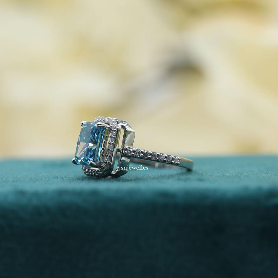 แหวนหมั้นเพชรทรงรัศมีสีน้ำเงิน ประดับเพชรแล็บโกรว์ ฝังแบบพาเว่ ได้รับการรับรองจาก IGI หรูหรา ทองคำแท้ 10k สำหรับผู้หญิง