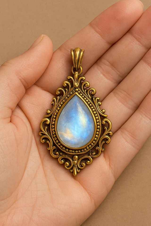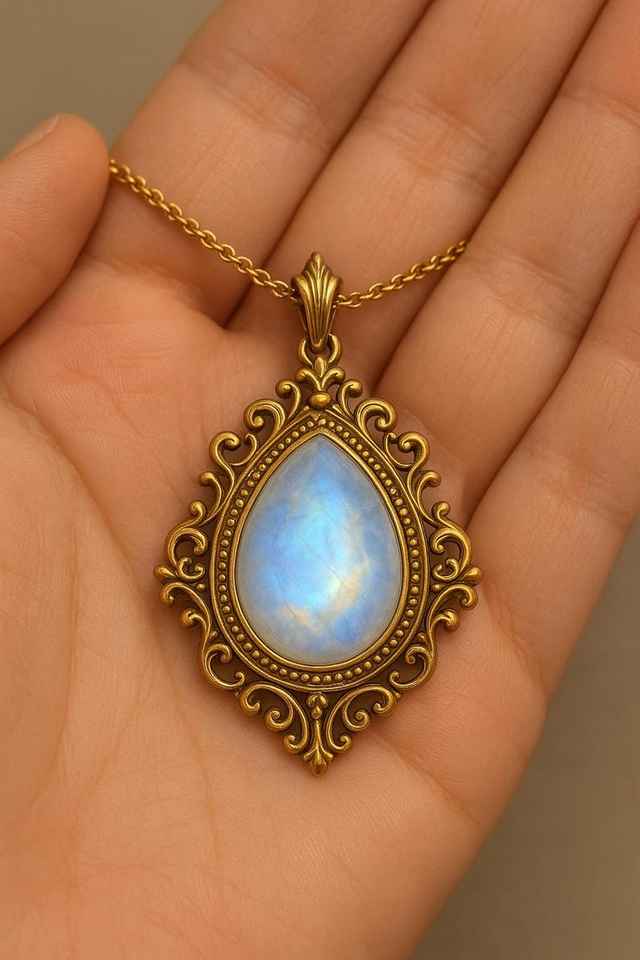 จี้มูนสโตนสายรุ้งสีฟ้า925เงินสเตอร์ลิง14K ชุบทองสร้อยคอเส้นใหญ่แบบเรียบง่ายของขวัญแฮนด์เมด
