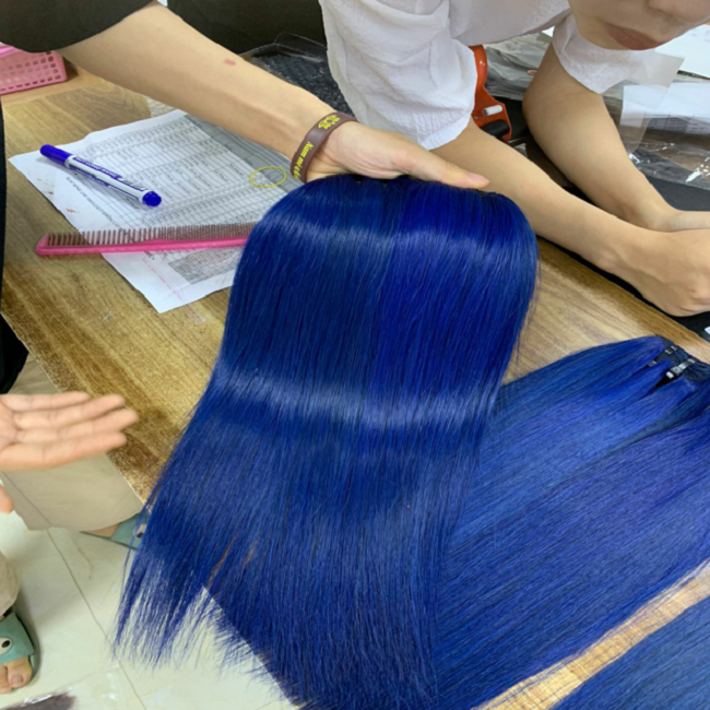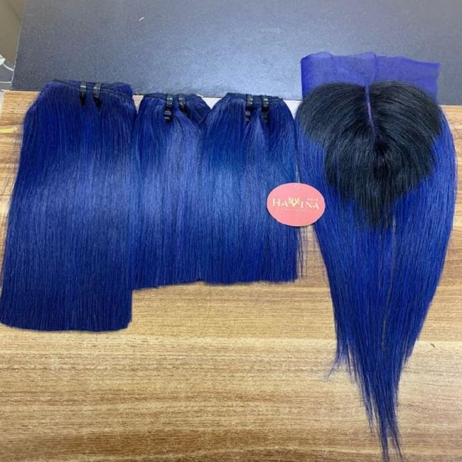 สีฟ้า Remy Weft นามสกุลผมมนุษย์หนังกำพร้าชิดผมบริสุทธิ์