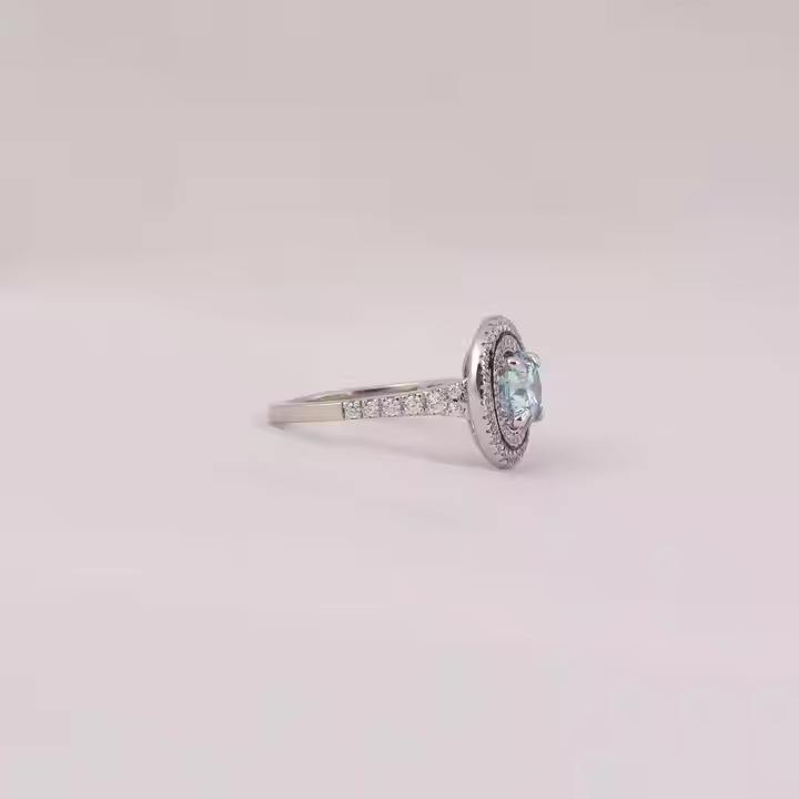 แหวนหมั้นเพชรสองชั้นตัดเป็นวงแหวนเพชรสีฟ้าครึ่งวงแหวนเพชรคู่สำหรับปลูกในห้องปฏิบัติการขนาดเล็กแหวนหมั้นเพชรล่าสุด