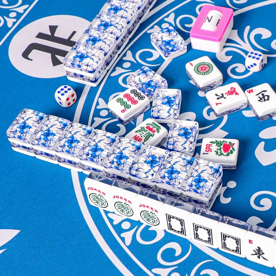 แผ่นยางสีน้ำเงินกันลื่นแผ่นปูโต๊ะไพ่นกกระจอกดีไซน์ทันสมัยพับได้ทนทานพื้นผิวลดเสียงรบกวนสำหรับเกมการ์ดและปาร์ตี้