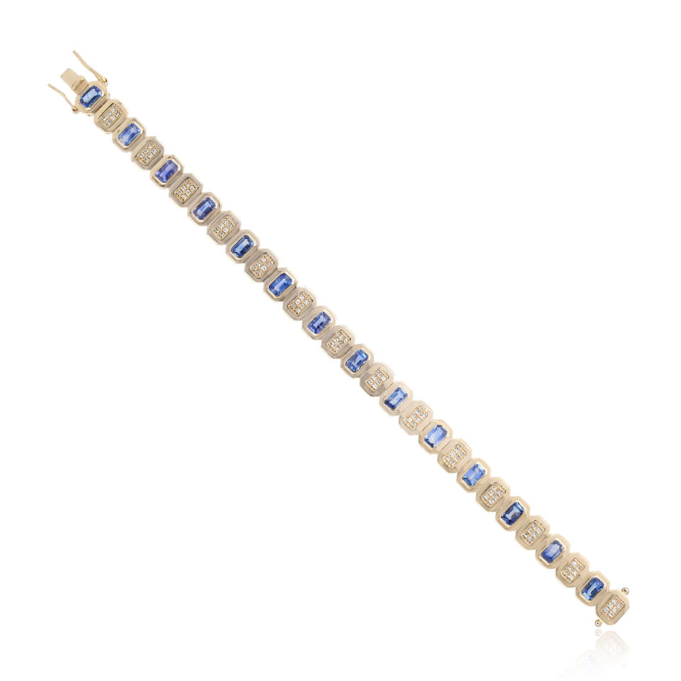 กำไลเทนนิสประดับพลอยไพลินสีน้ำเงิน ทองคำ 14k ประดับเพชรแบบฝัง งานแฮนด์เมด เครื่องประดับชั้นดี ขายส่ง