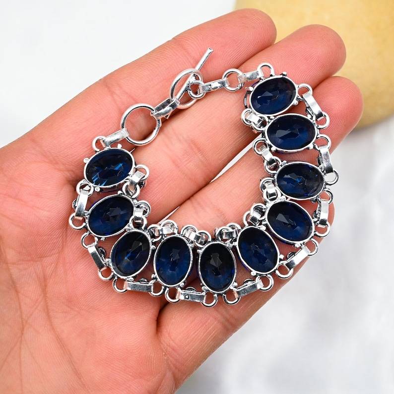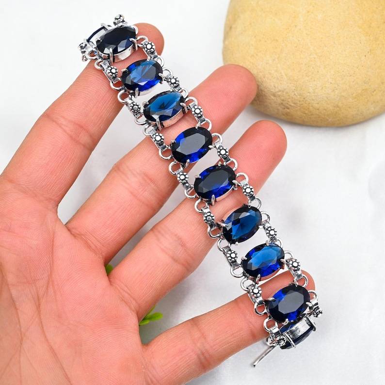 กำไลข้อมือเงินแท้ 925 ประดับพลอยไพลินสีน้ำเงิน งานแฮนด์เมด ของขวัญเครื่องประดับสุดหรูสำหรับเธอ ฉลองวันครบรอบแต่งงาน