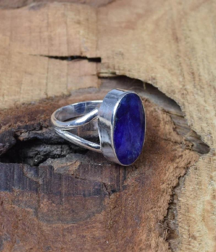 แหวนไพลินสีน้ำเงินทรงรี เงินแท้ 925 พลอยธรรมชาติ เครื่องประดับทำมือ แหวนประจำเดือนเกิดกันยายน ผู้ผลิตขายส่ง