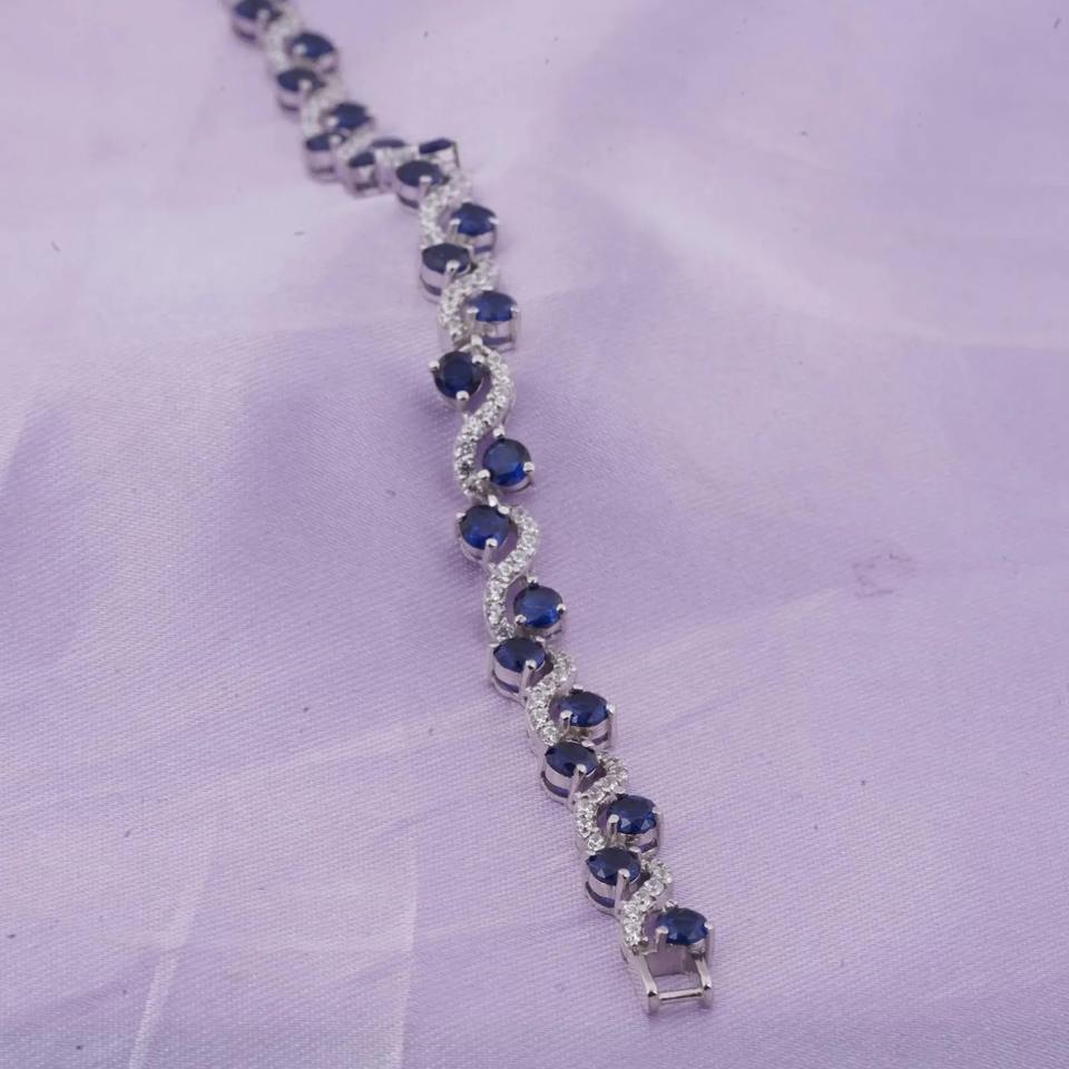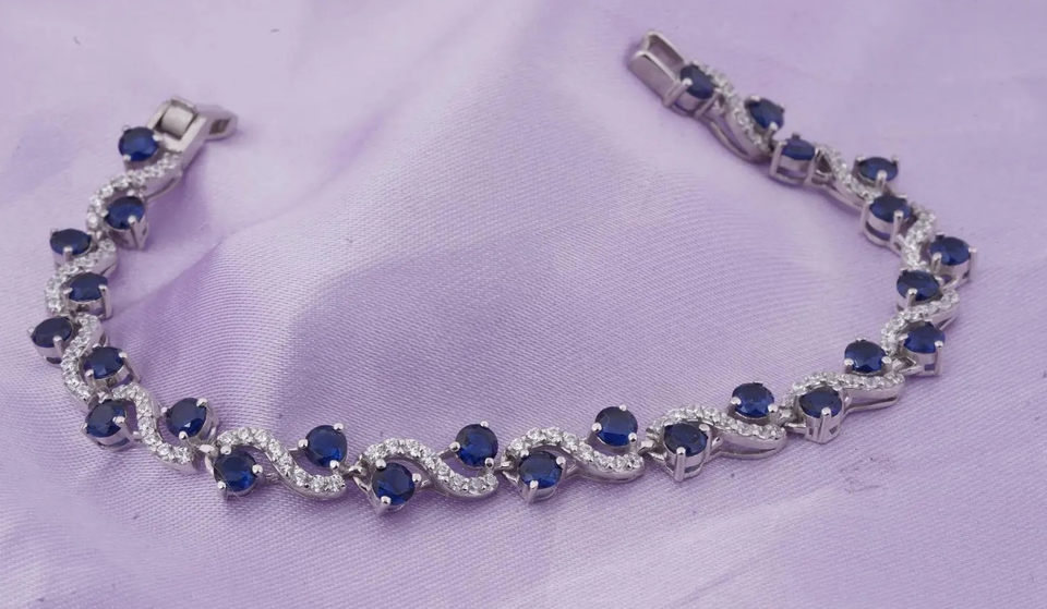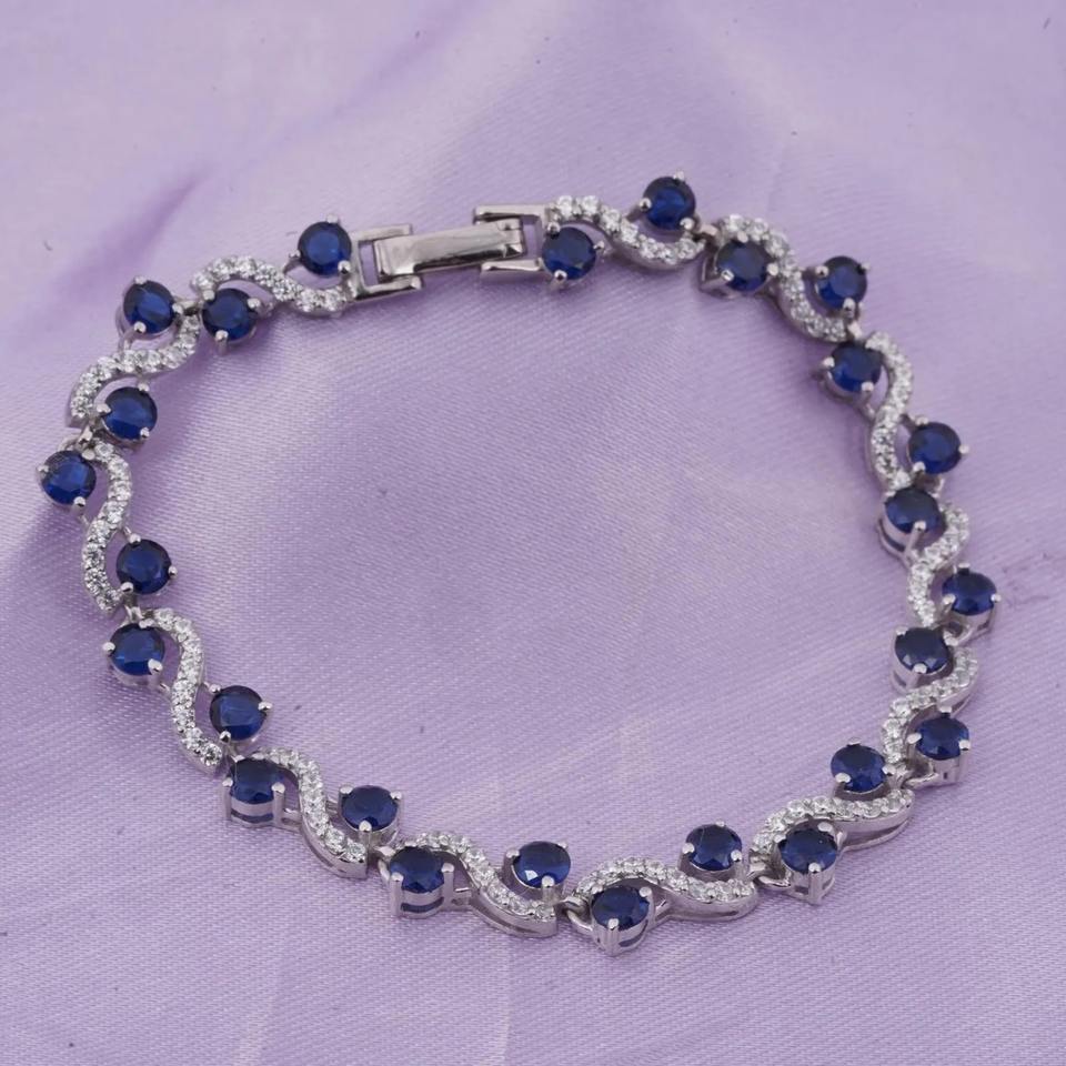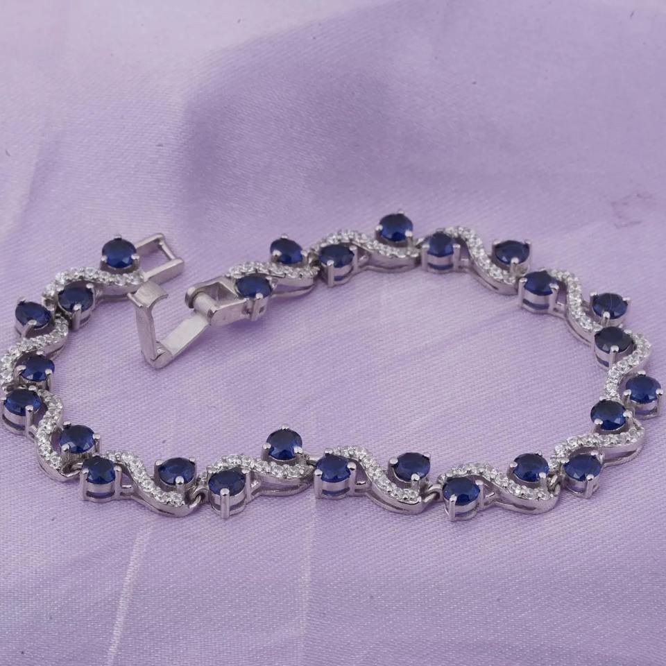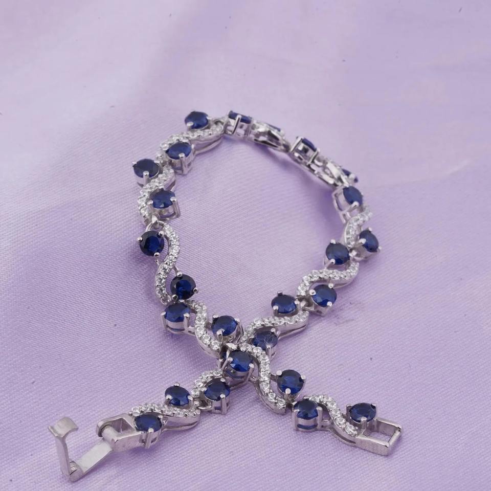 สร้อยข้อมือเทนนิสไพลินสีน้ำเงินทรงกลมแบบมินิมอล925สเตอร์ลิงเงินของขวัญเครื่องประดับชั้นดีสำหรับผู้หญิง