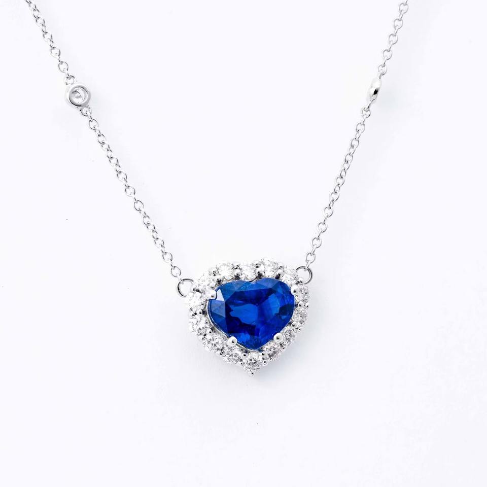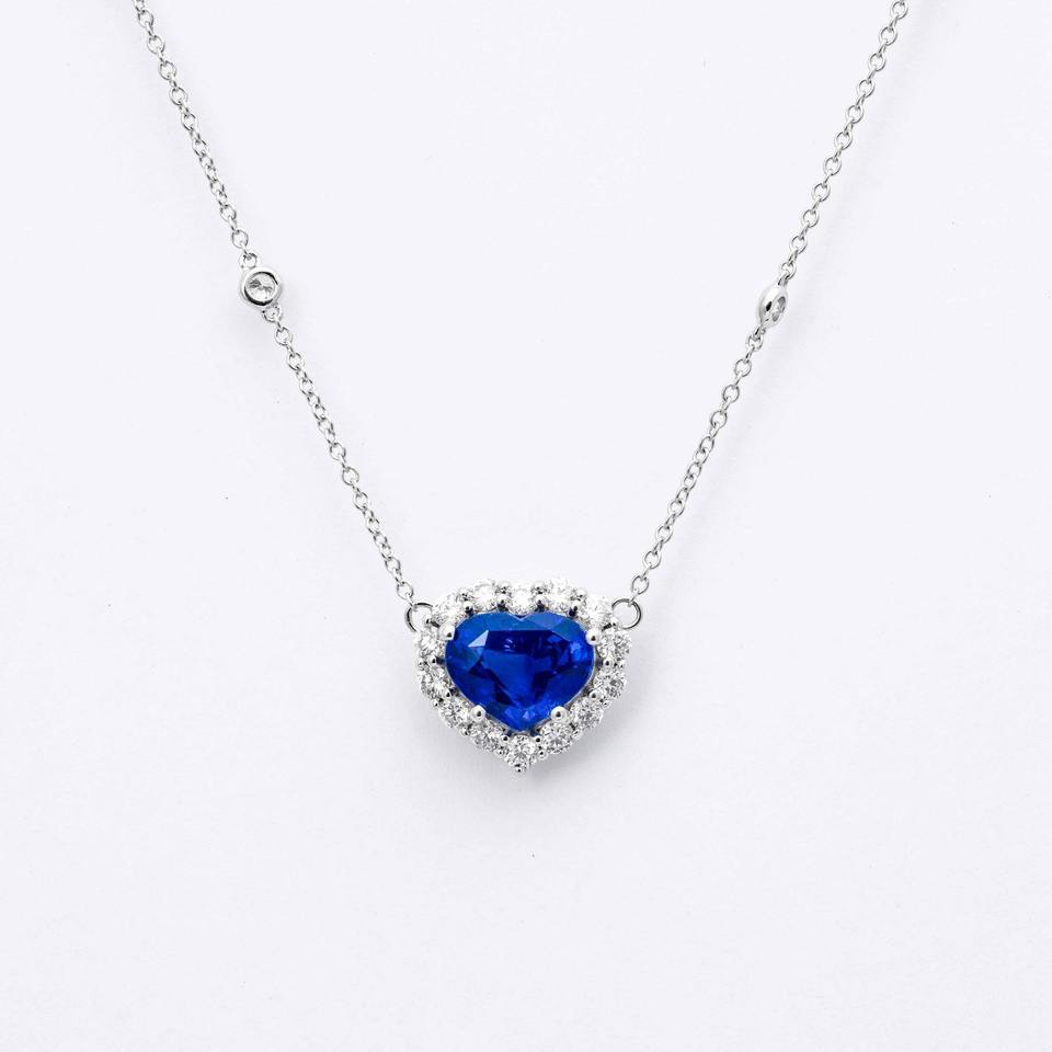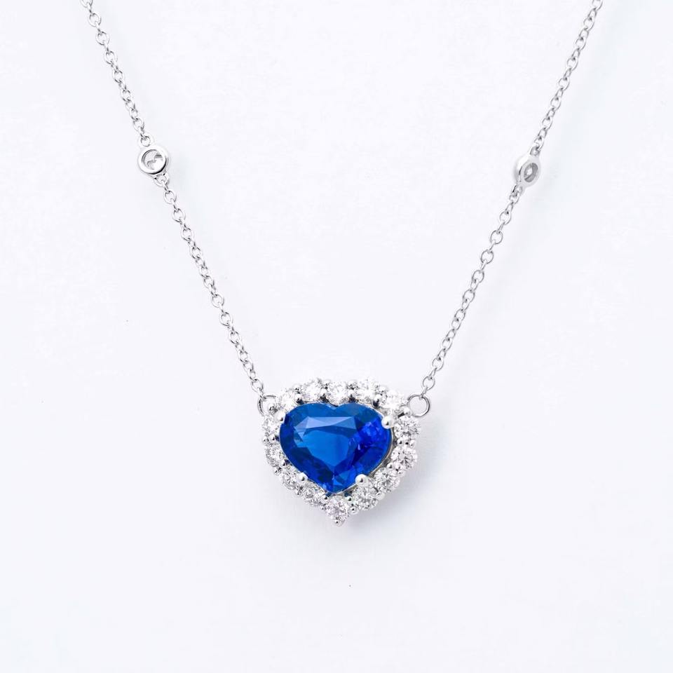 Design:Heart Cut Blue Sapphire Diamond Necklace