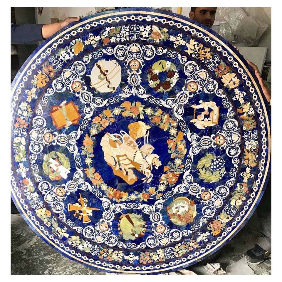 ท็อปโต๊ะฝังหินลาพิสลาซูลีกึ่งมีค่าสีน้ำเงิน