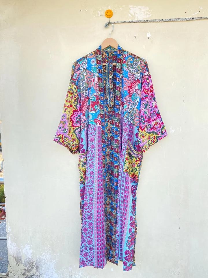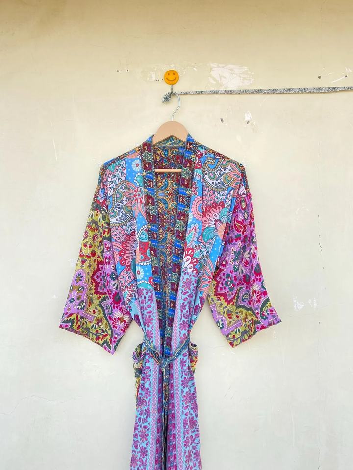 ชุดกิโมโนผ้าฝ้ายพิมพ์ลายบล็อก