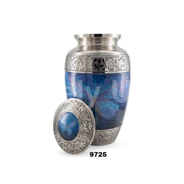 โกศใส่เถ้ากระดูกรูปผีเสื้อสีเงินสีน้ำเงินสำหรับผู้ใหญ่ขี้เถ้ามนุษย์สำหรับพิธีฝังศพที่ระลึกพร้อมถุงกำมะหยี่ฟรี