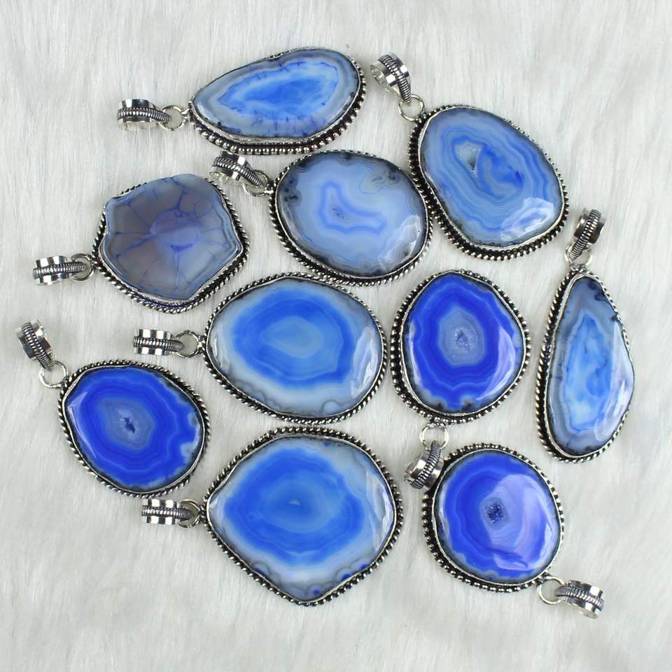 Product Name:Blue Solar Quartz Slice silver plated pendants