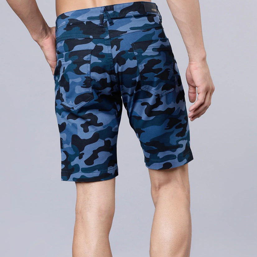 กางเกงขาสั้นผู้ชายสีน้ำเงินทึบสูงเป็นมิตรกับสิ่งแวดล้อมผ้าโพลีเอสเตอร์แบบมีหลายกระเป๋าลำลองแนวสตรีทสวมใส่กลางแจ้ง