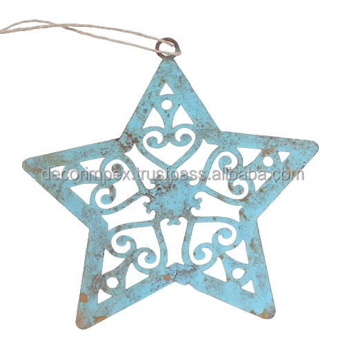 โคมไฟเหล็กและโคมไฟตกแต่งสไตล์อินเดียงานฝีมือรูปดาวสีฟ้าโคมไฟประดับเทศกาลอุปกรณ์ตกแต่งงานปาร์ตี้