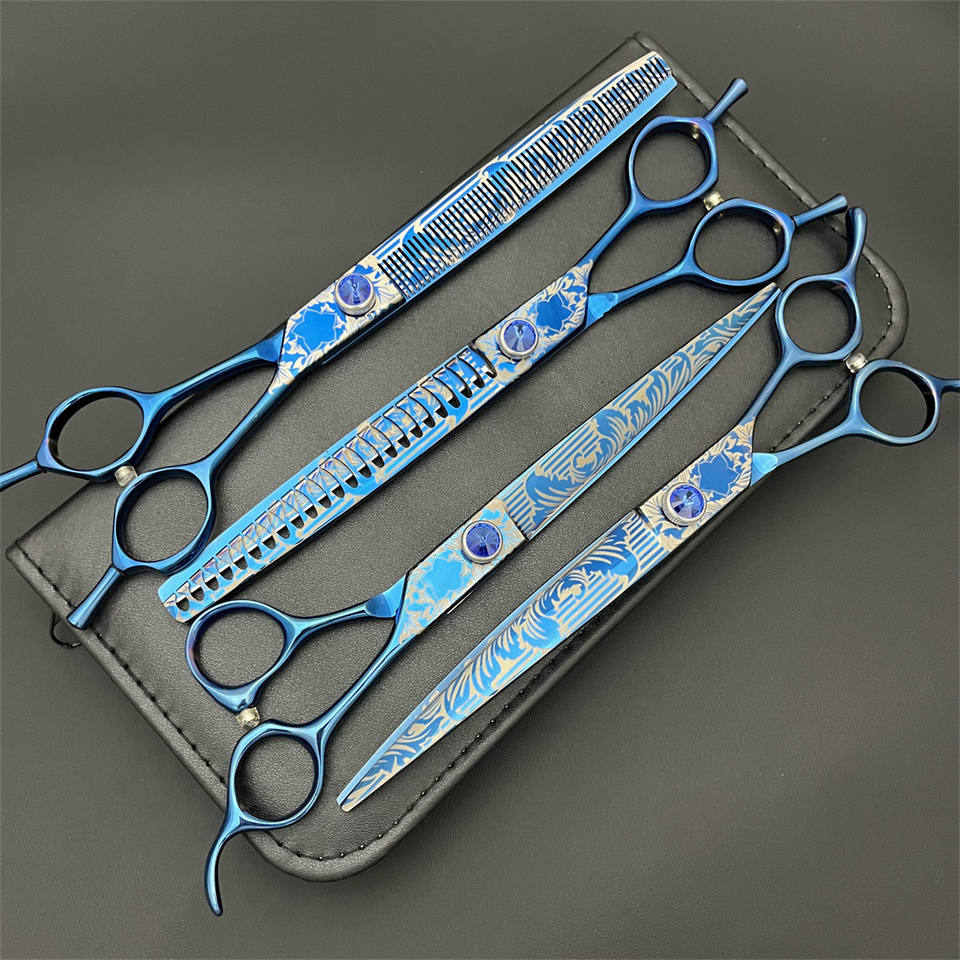 กรรไกรตัดขนสัตว์เลี้ยงบลูสตีล 7.5 นิ้ว ใบมีดตรง สแตนเลสสตีล อุปกรณ์ตัดขนสุนัข กรรไกรตัดแต่งขนมืออาชีพ
