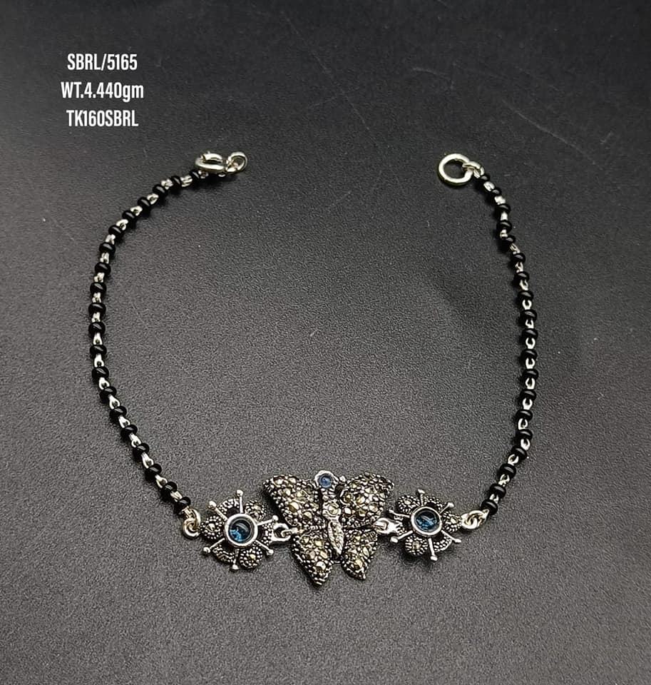 หินสีฟ้าผีเสื้อเงิน925สร้อยข้อมือออกซิไดซ์ด้วยลูกปัดสีดำเครื่องประดับ Unisex สร้อยข้อมือลูกปัดเงิน