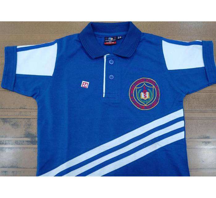 เสื้อยืดสีน้ำเงิน OEM ODM แบบยูนิเซ็กซ์ ผลิตจากโพลีเอสเตอร์ สำหรับชุดนักเรียน ชุดลำลอง สำหรับเด็กนักเรียนประถมและมัธยม