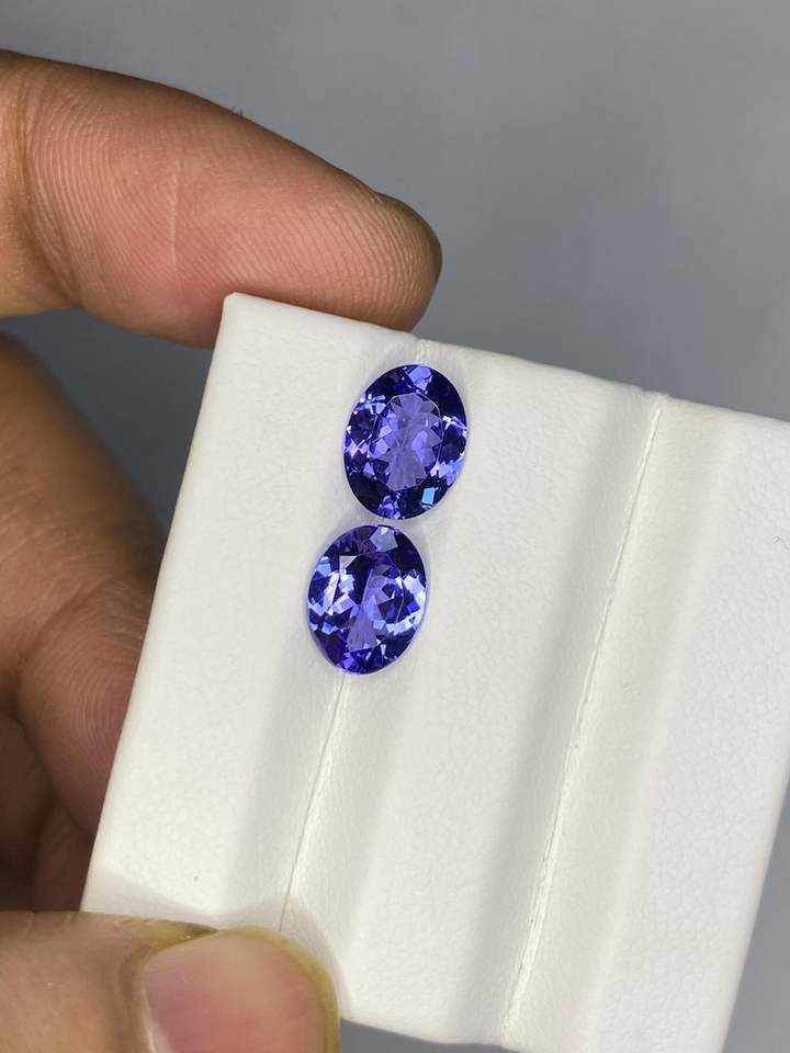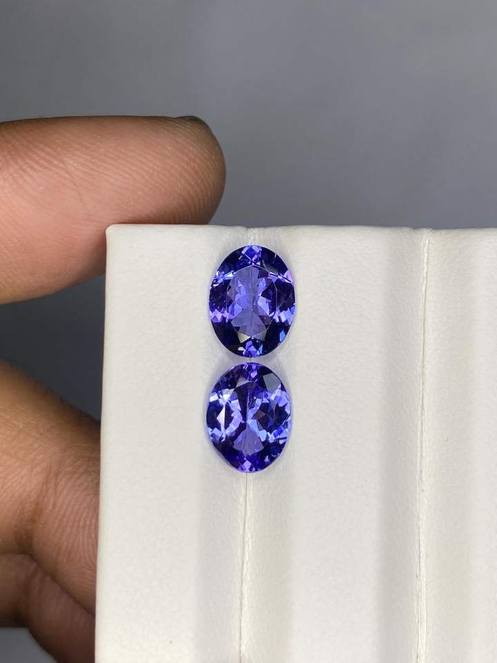 คู่พลอยแทนซาไนต์สีน้ำเงิน 3.60 กะรัต รูปไข่เจียระไนแบบเหลี่ยม ขนาด 7x9 มม. พลอยธรรมชาติสำหรับทำเครื่องประดับ