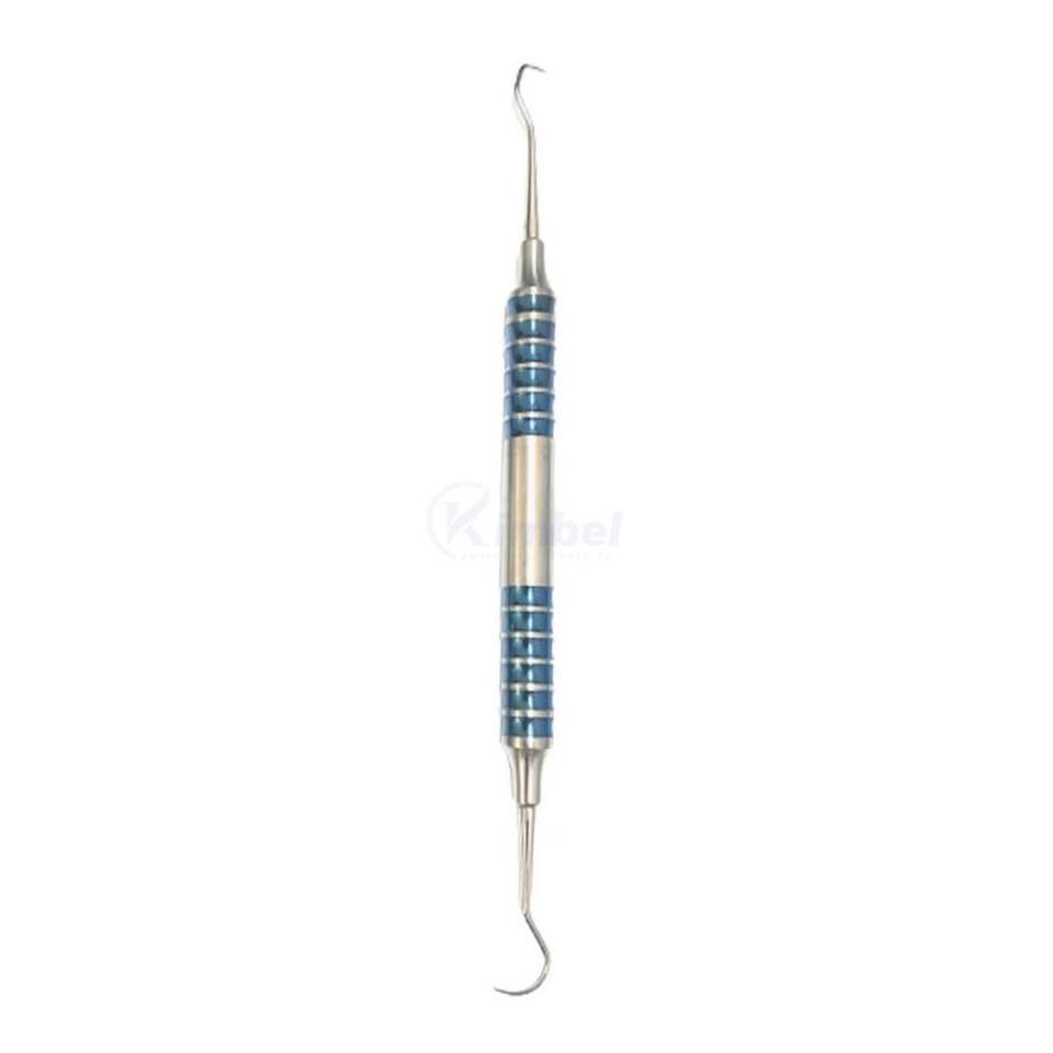 เครื่องขูดหินปูนแบบมือจับสีน้ำเงิน ทำจากสแตนเลสสตีล ปลายสองด้าน สำหรับขูดคราบหินปูน เครื่องมือสุขอนามัยช่องปากระดับมืออาชีพ