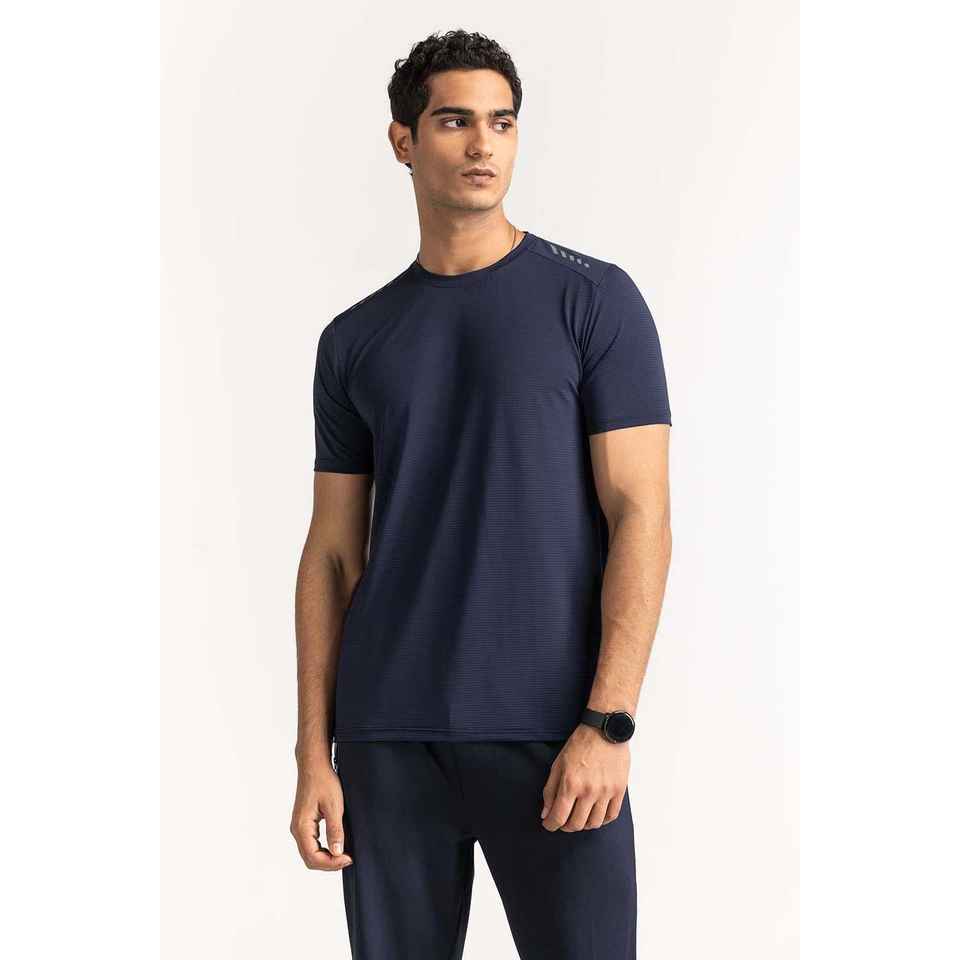 เสื้อยืดฟิตเนสเนื้อผ้าถักสีน้ำเงิน รุ่น AW-TS24-006 ทรงหลวม พิมพ์ลายสกรีน สีพื้น ย้อมสี พิมพ์ลาย เสื้อยืดน้ำหนักมาก บีบอัด