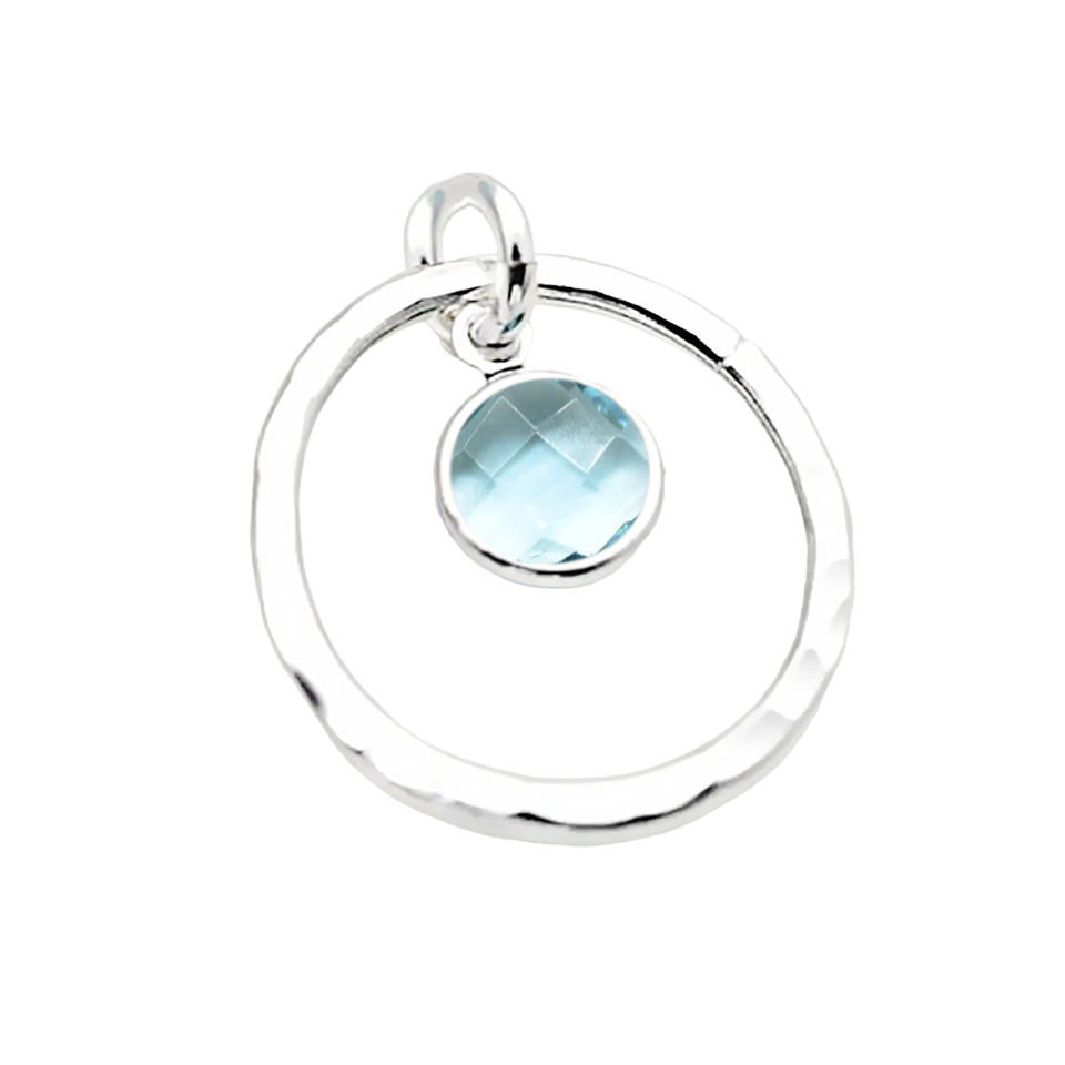 925พลอยบุษราคัมสีฟ้าทรงกลมทำจากเงินสเตอร์ลิงวงด้วยค้อนอัญมณีห้อยตุ้งติ้งเครื่องประดับจี้พลอยสำหรับวันเกิด